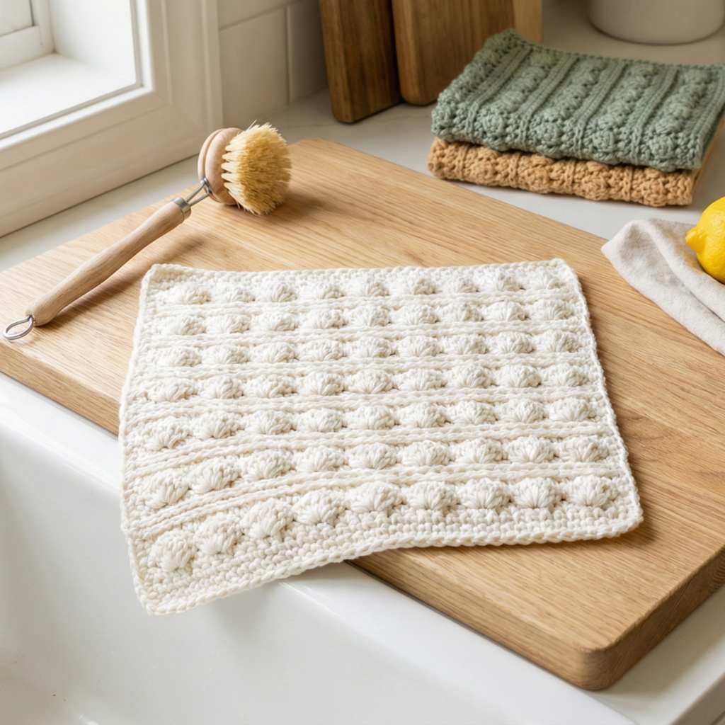 - Finished size: typical dishcloths are 8–10 in (20–25 cm) square. You can scale up for a scrubby or down for a coaster.