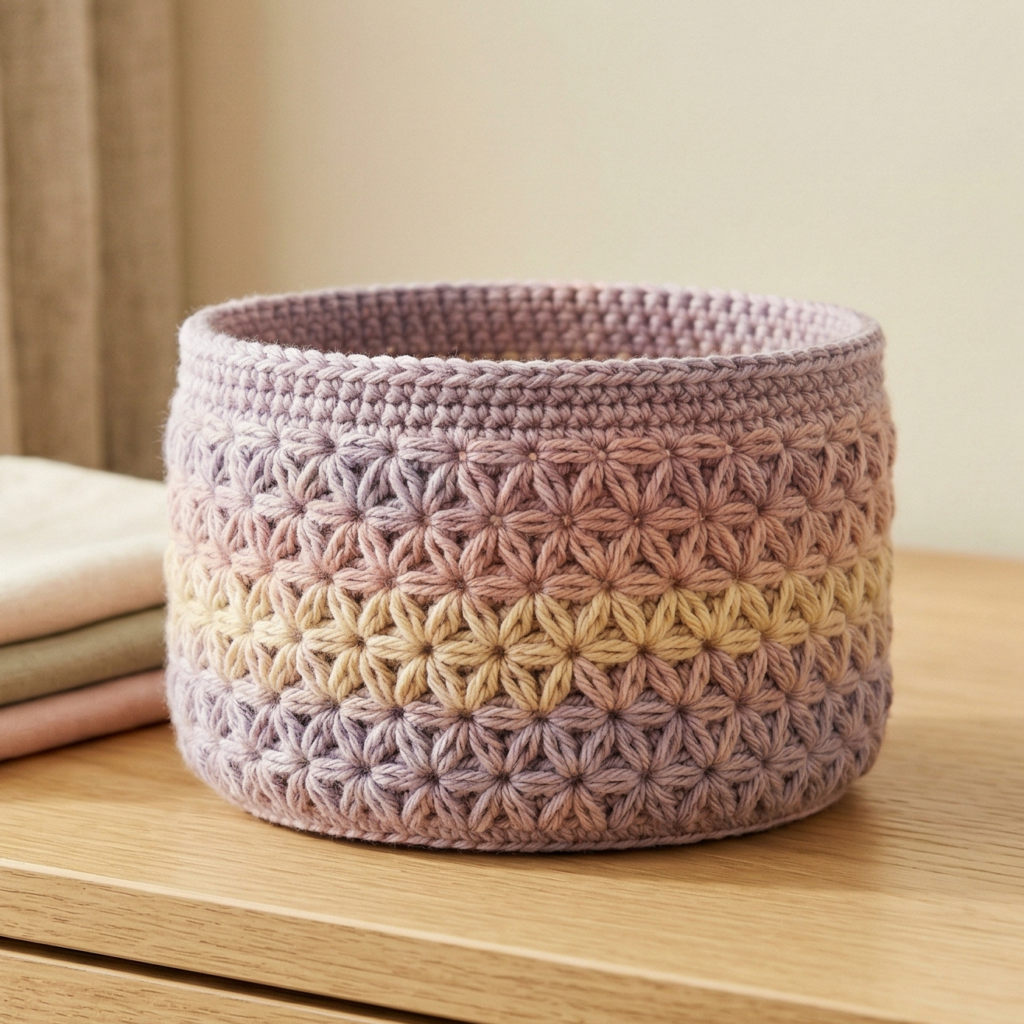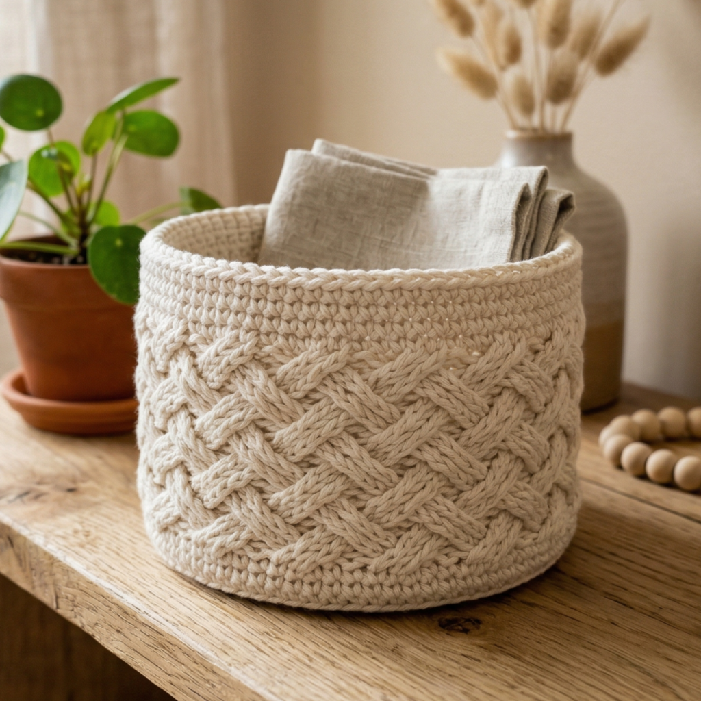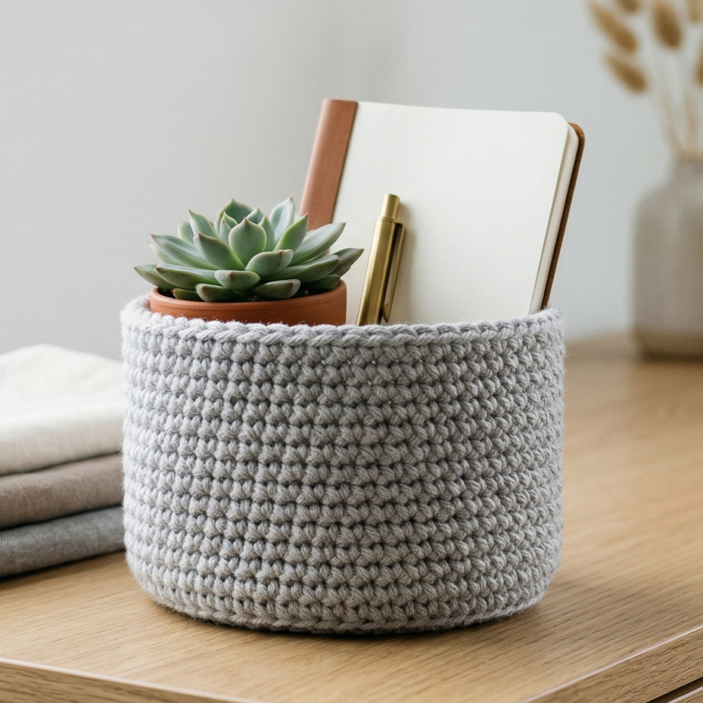 This is the best option if you want a basket that works in almost any space. A neutral color makes it easy to match with modern decor, and the simple design means it can be made quickly and used in many ways. It is a great beginner pattern if you want something useful and stylish at the same time.