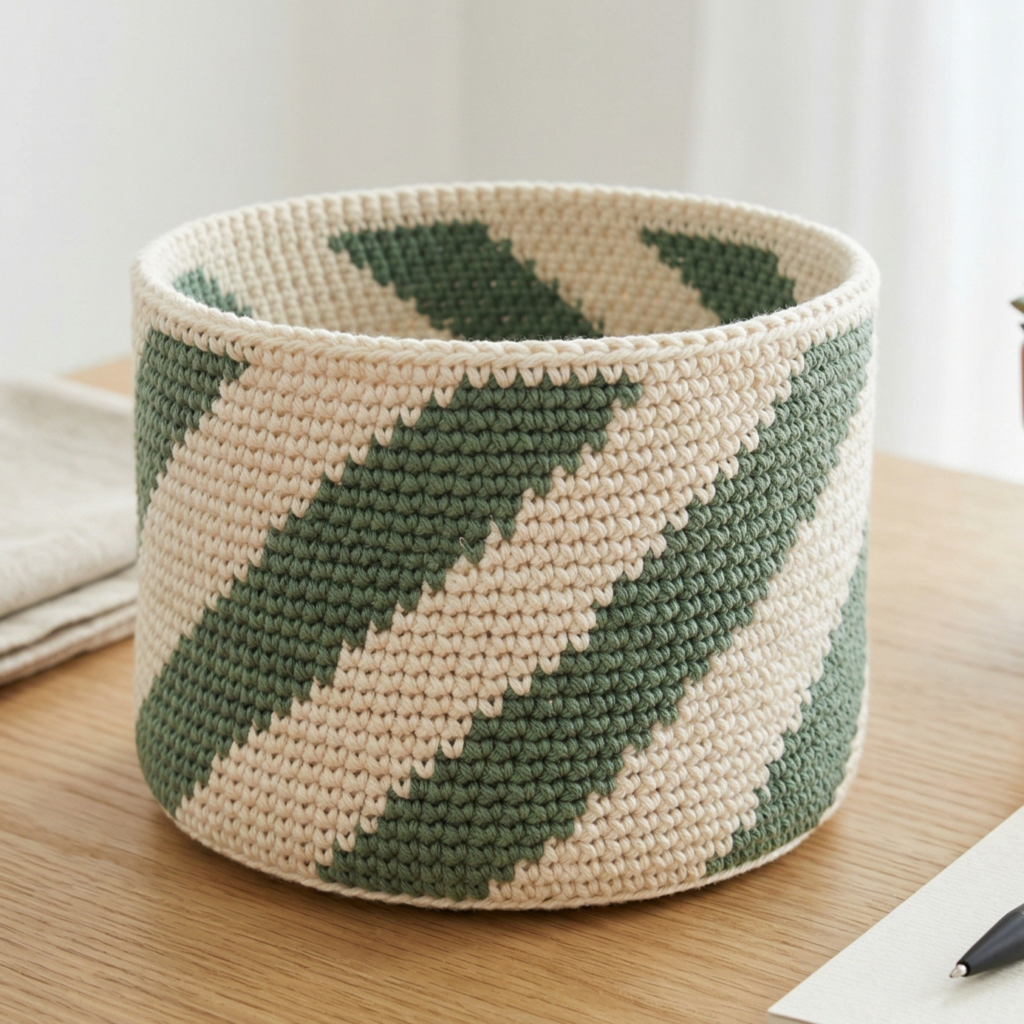 A mini oblique lines stripes basket gives you a clean, modern look with just enough movement to feel interesting. The diagonal stripe effect makes the basket look fresh and stylish, while the simple structure keeps it easy to make. This is a great option if you want a basket that feels contemporary and useful.