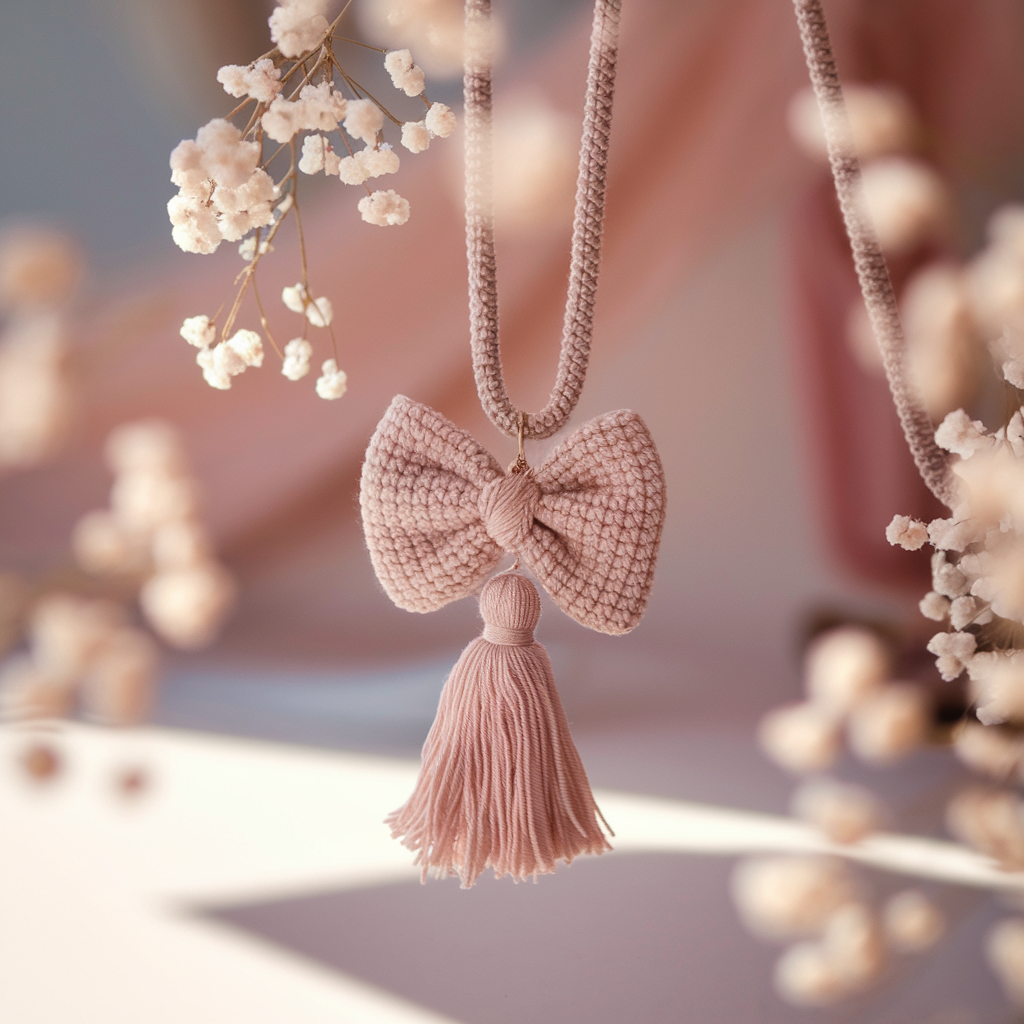 - Attach bow as a removable pendant on multiple cords for outfit versatility.