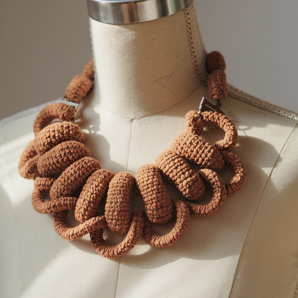 - Most yarn necklaces are spot clean only. Use gentle wash and dry flat if needed. Avoid long soaking with metal parts.