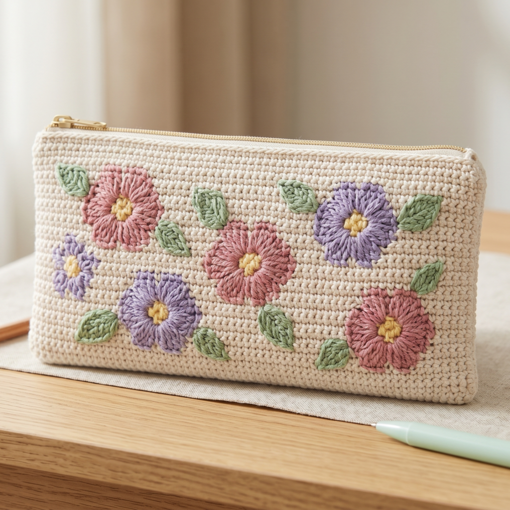 This pouch looks especially lovely in soft floral palettes, but you can also make it feel more modern with muted background shades and bold flower colors. It is a great project for spring gift sets, stationery lovers, or anyone who enjoys pretty handmade storage pieces.