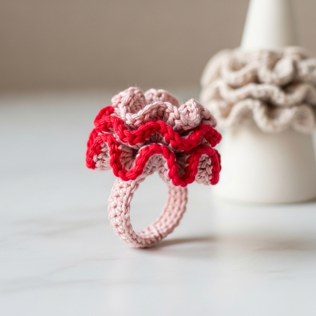 These five designs — Crazy Ruffle, Pumpkin, Daisy, Granny Square, and Bunny — give you a versatile set of little rings you can make in an afternoon. They’re perfect beginner-friendly projects that teach working in rounds, simple shaping, tiny appliqué construction, and secure finishing. Use them as quick gifts, party favors, craft-market stock, or playful personal accessories.