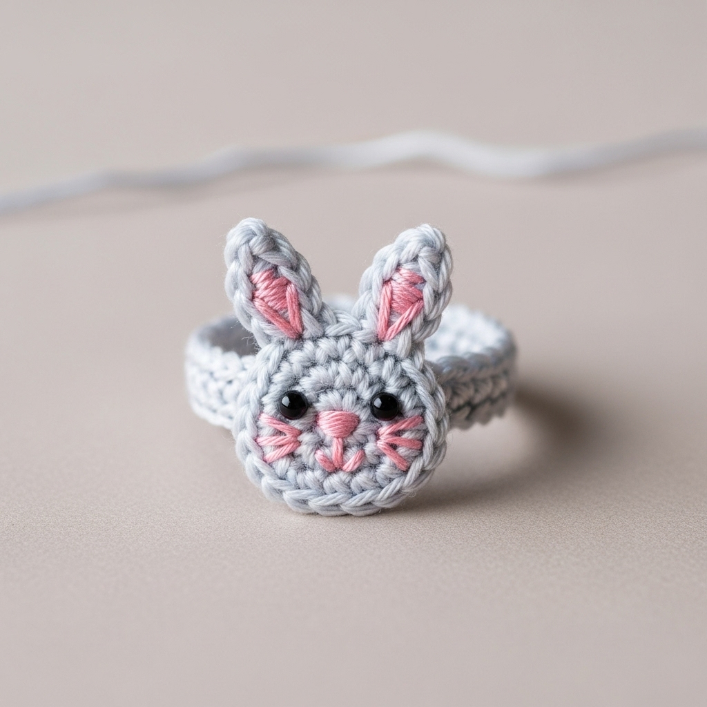 Finished size (example): Bunny face ~0.9 in high; band circumference ~1.9 in.