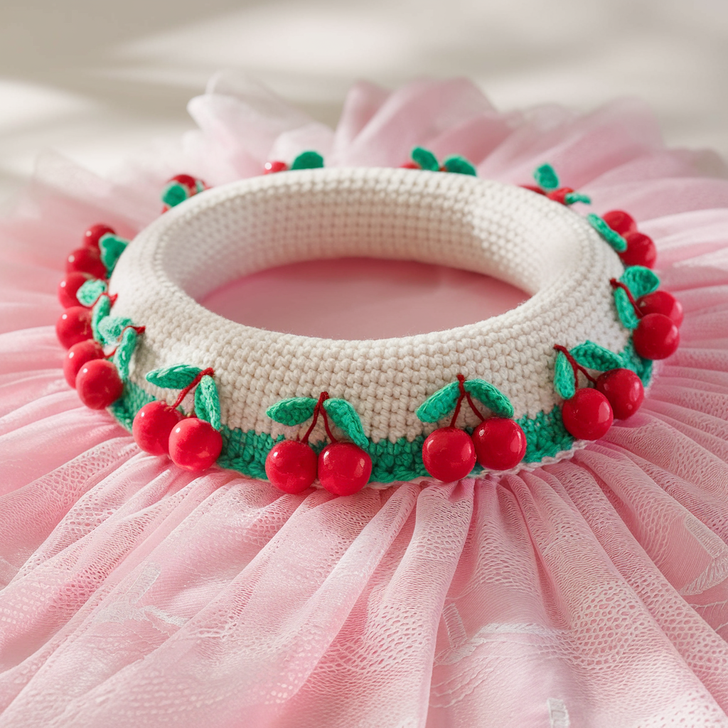 - Attach Cherries: Sew each cherry to collar edge.