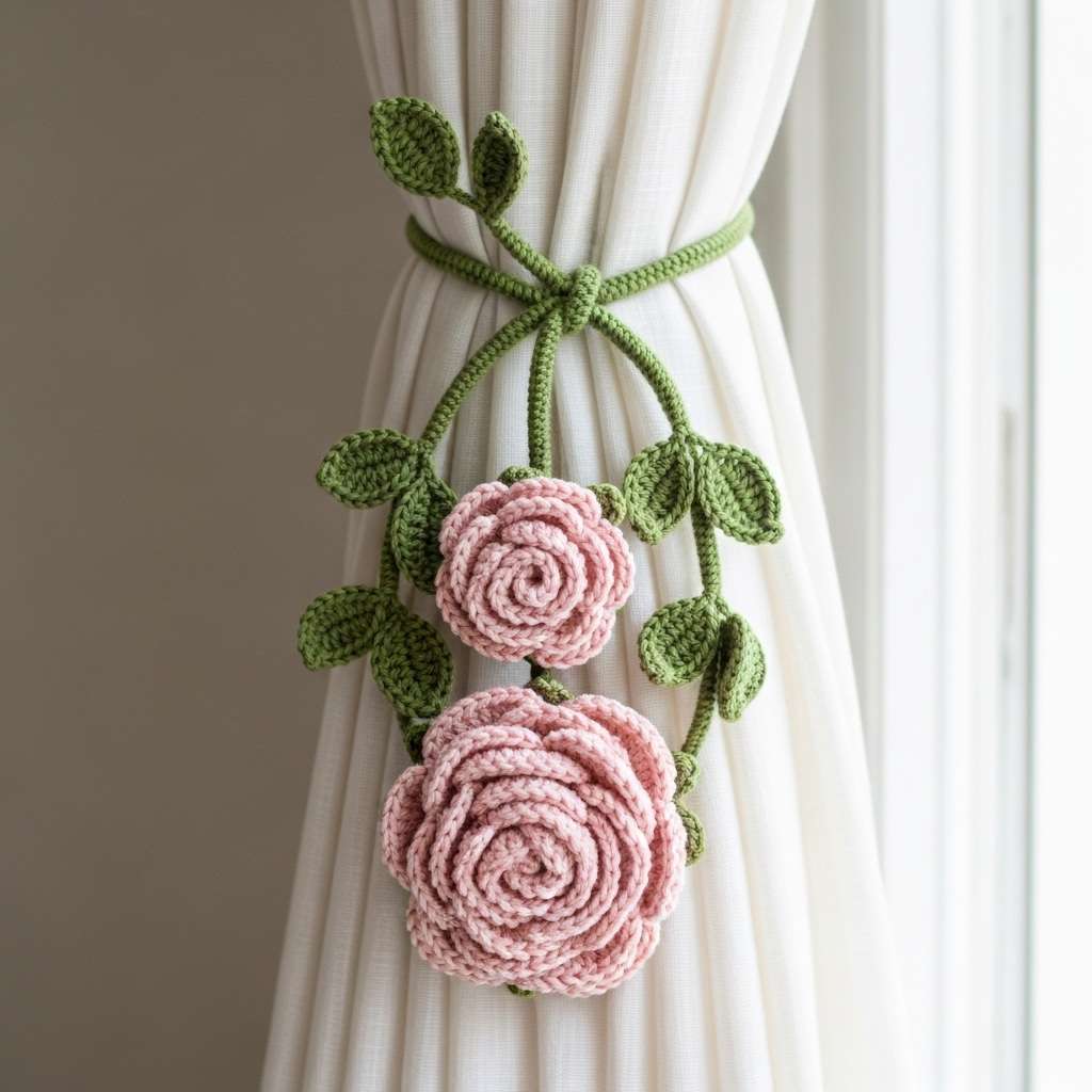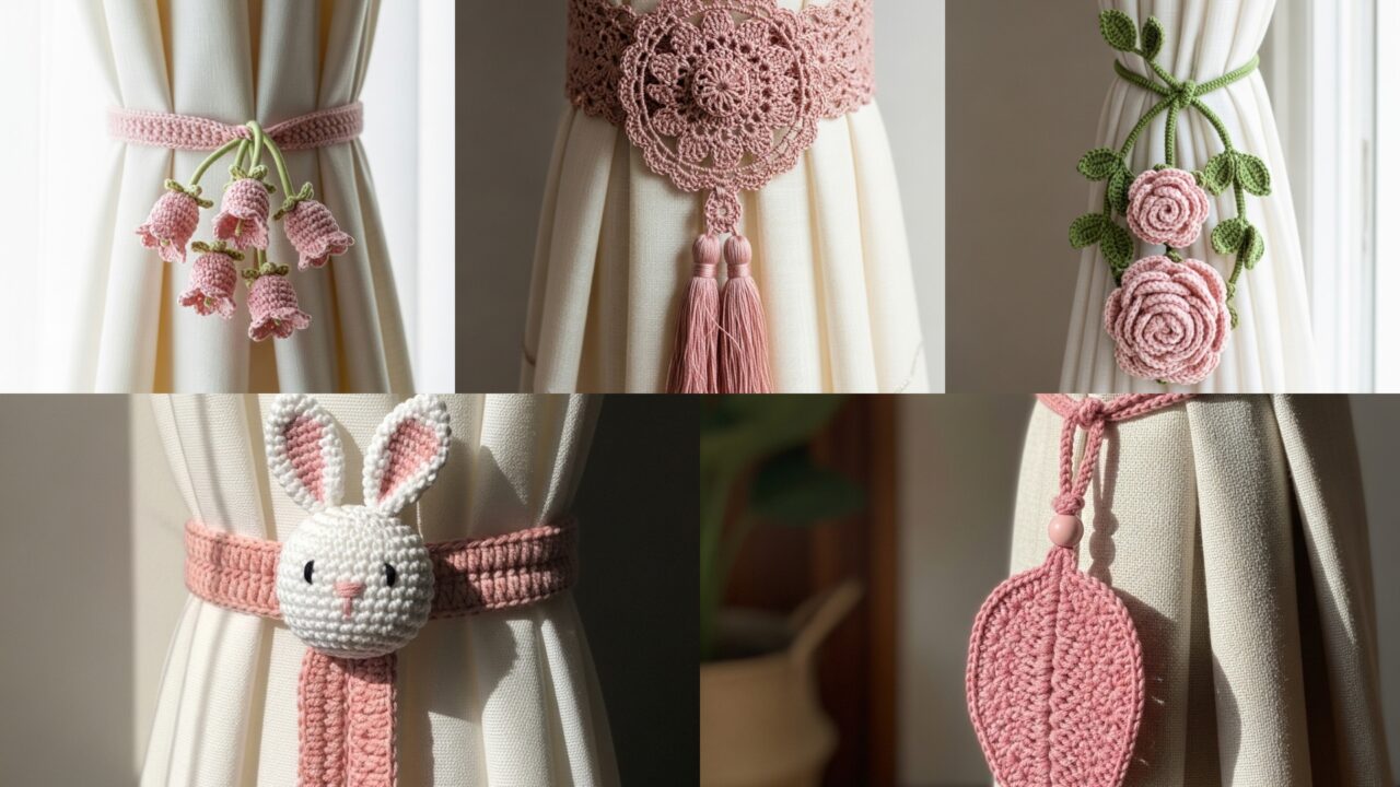Curtain tiebacks are one of those tiny home details that quietly lift a room — they’re functional, decorative, and a lovely place to show off small crochet motifs (flowers, leaves, animals). Below you’ll find a friendly, detailed introduction (materials, measurements, hardware, safety and mounting options) and five full tieback patterns with materials, stitch notes, step-by-step construction, assembly/attachment options, finishing and styling ideas: Rose, Vintage, Bell Flower, Bohemian Leaf, and Adorable Bunny. Each pattern includes a sample size and clear instructions so you can customize to your curtain thickness and style.