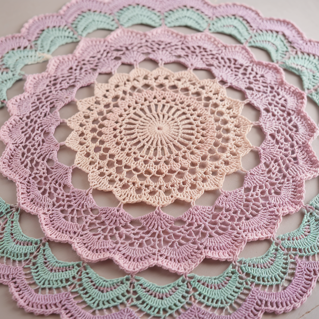 - Final edge: Work a delicate shell scallop: sc, skip 2, 7 dc in next st, skip 2, sc around. Add a picot at shell peaks if desired.