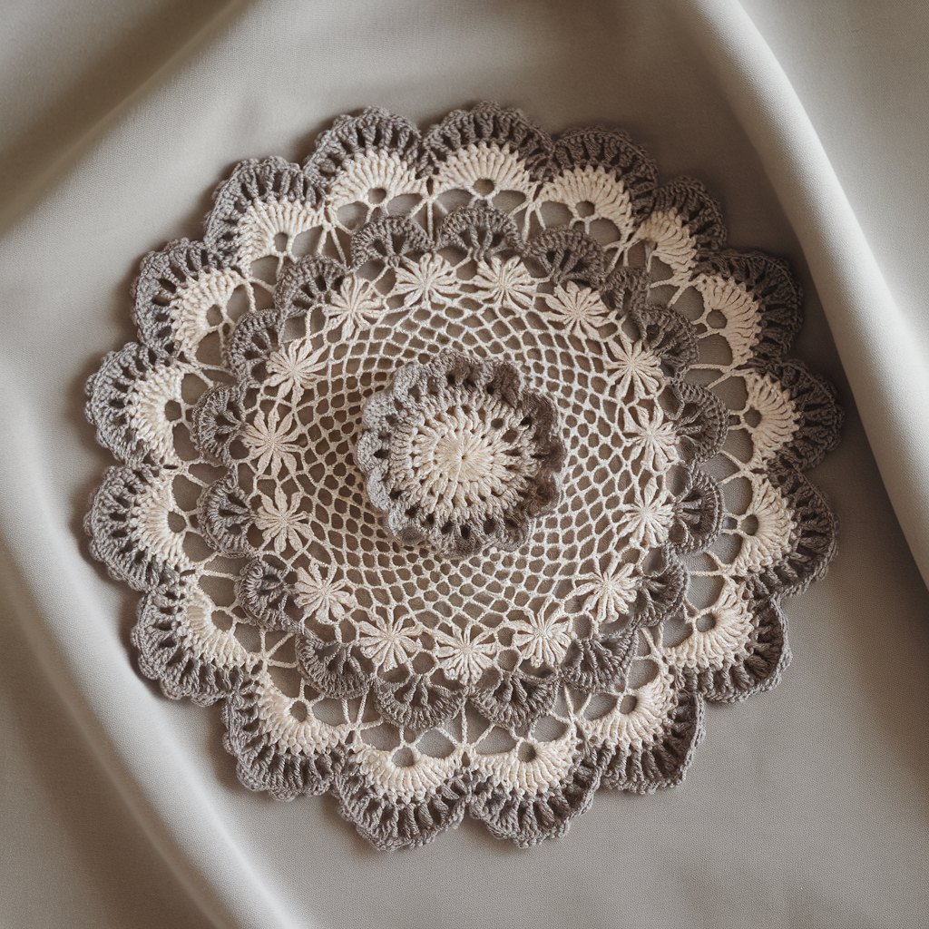 - Round 7–10: Alternate stabilizing rounds of dc and decorative rounds of clusters and picots to broaden the doily. A typical sequence: dc round, shell round, picot round, sc round for stability.