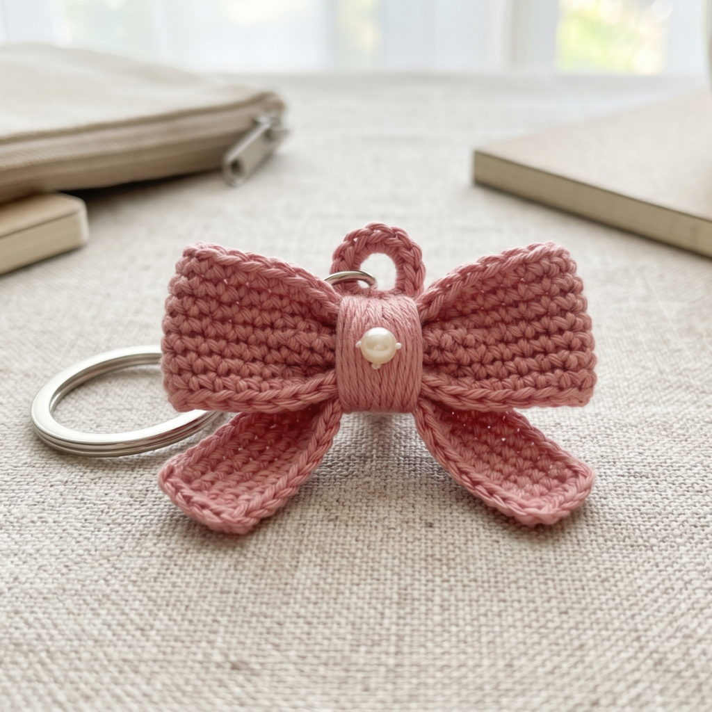 2. Crochet Mini Ribbon Bow Keychain Pattern
