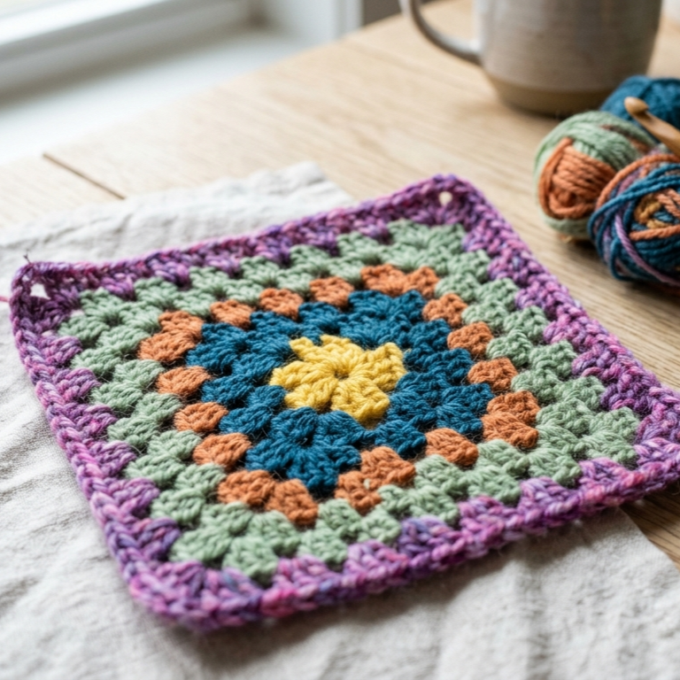 The crochet scrap yarn granny square is one of the most useful stash-busting projects you can make. It is simple, flexible, and perfect for using small amounts of different colors. Granny squares can be turned into blankets, bags, cushion covers, garments, coasters, and so much more. Because each round can use a different scrap, this project is one of the best ways to reduce waste creatively.