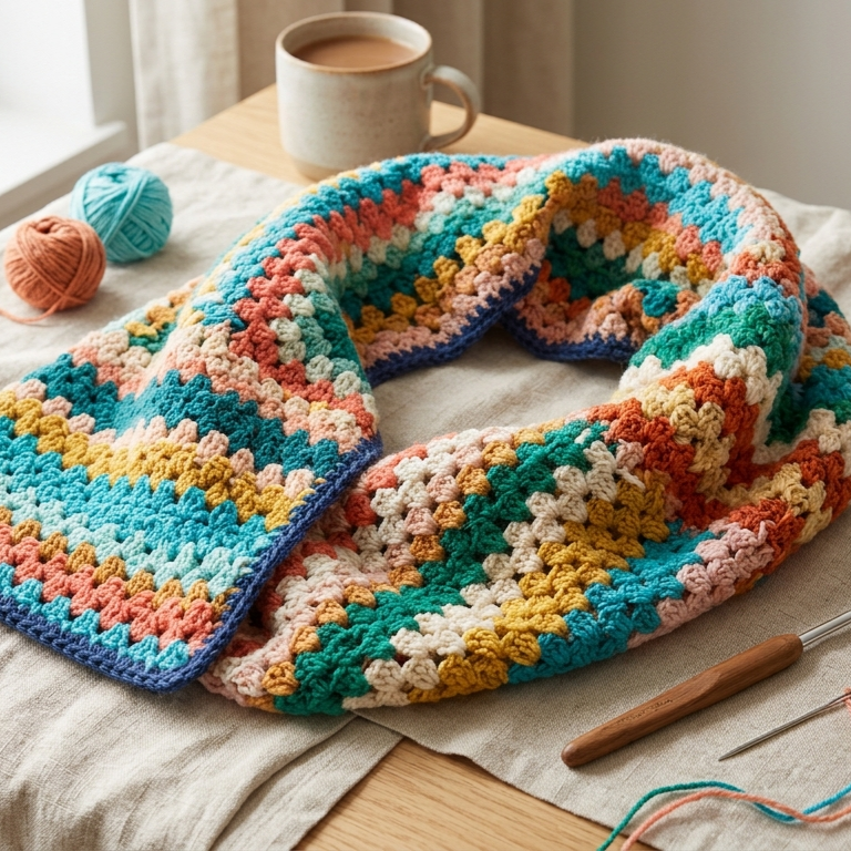 The crochet scrap yarn granny stripes cowl is a cozy and creative project that works beautifully with leftover yarn. Granny stripes are easy to repeat and look great in mixed colors, which makes them ideal for using scraps of different lengths. A cowl is also practical because it is wearable, warm, and quick to finish.