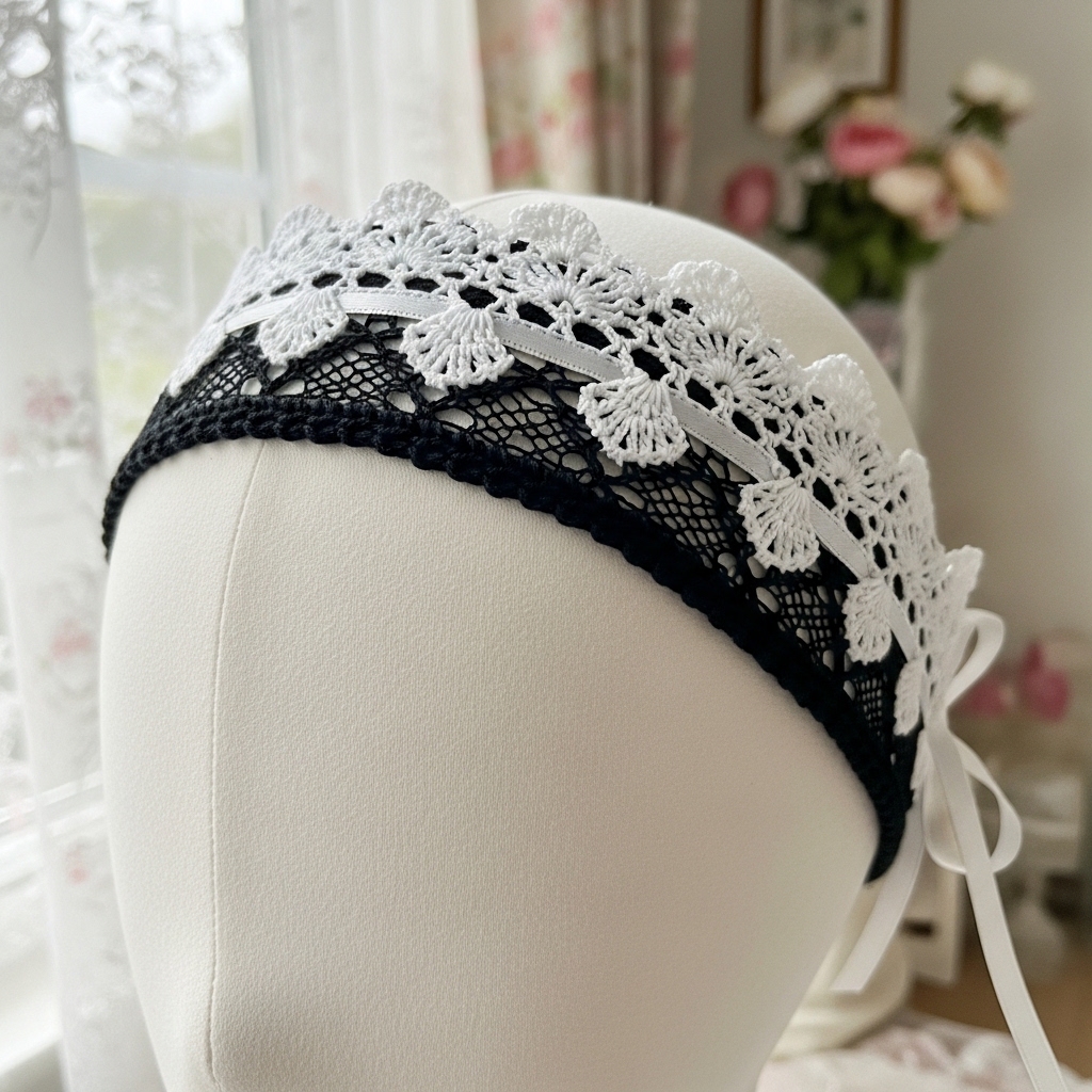 2. Crochet Black & White Aesthetic Lace Lolita Headband Pattern