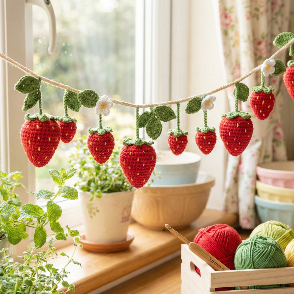 You now have five fully developed crochet garland patterns — from sweet String of Hearts and playful Strawberry Garland to resourceful Scrap-Buster Holiday Light Garland, romantic Wisteria Garland, and minimalist Aesthetic Leaf Garland. Each pattern is crafted to be adaptable, scrap-friendly, and safe (especially when combining yarn with lights).
