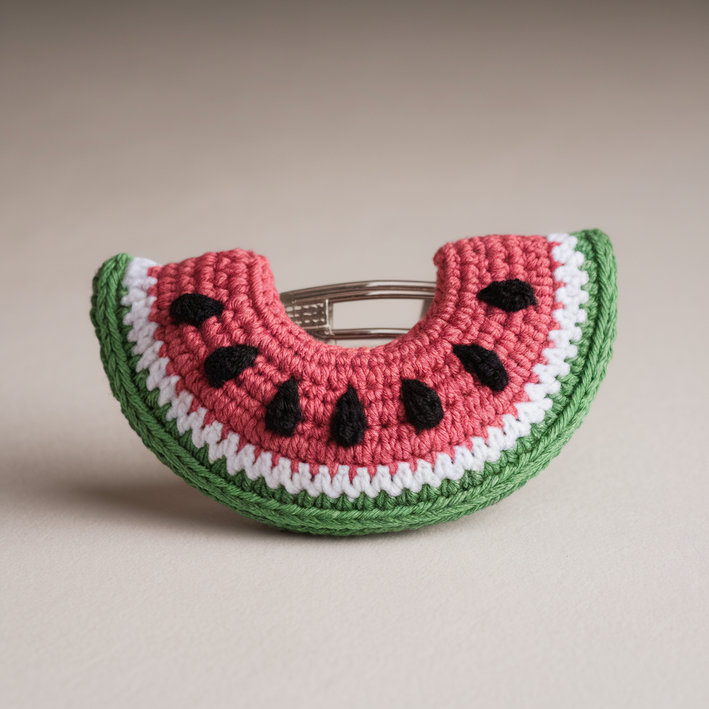 - Make tiny watermelon halves as barrettes (shorter chain/rounds).