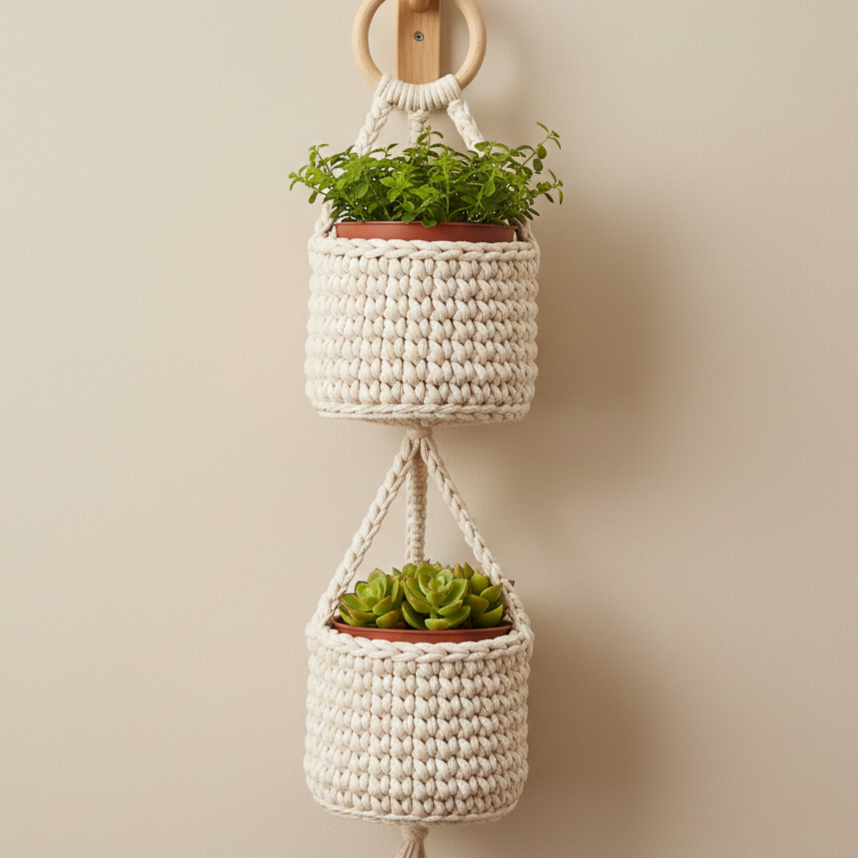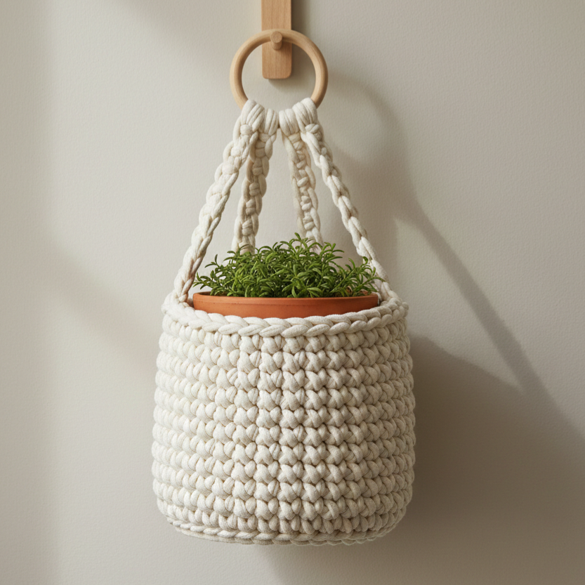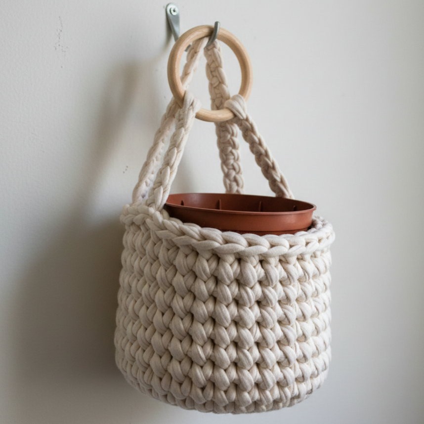 They transform vertical space, save floor real estate, and let you coordinate plants with decor. Crochet fabric is flexible, so you can make fitted baskets for specific pots or stretchy slings that fit multiple pot sizes.