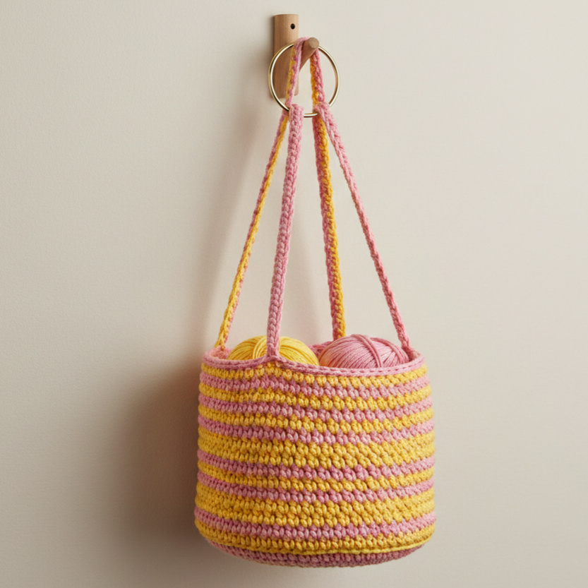 1. Crochet Sweet Stripes Hanging Basket Pattern