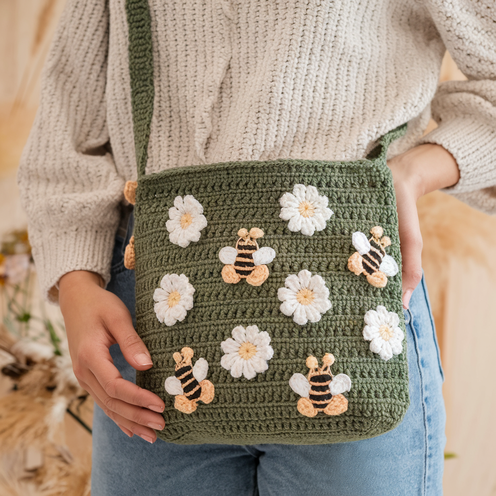 3. Crochet Daisy and Bee Motifs Aesthetic Bag Pattern