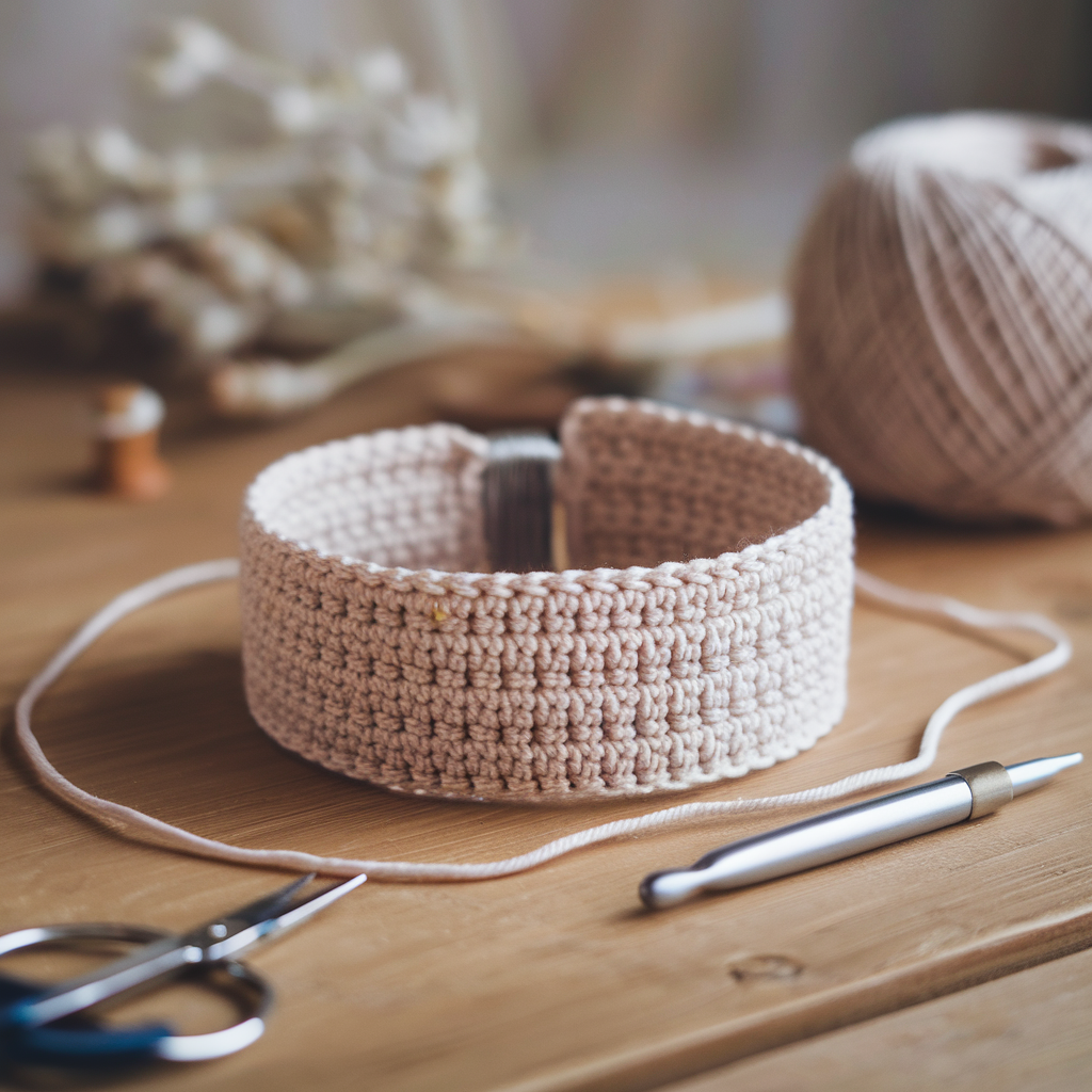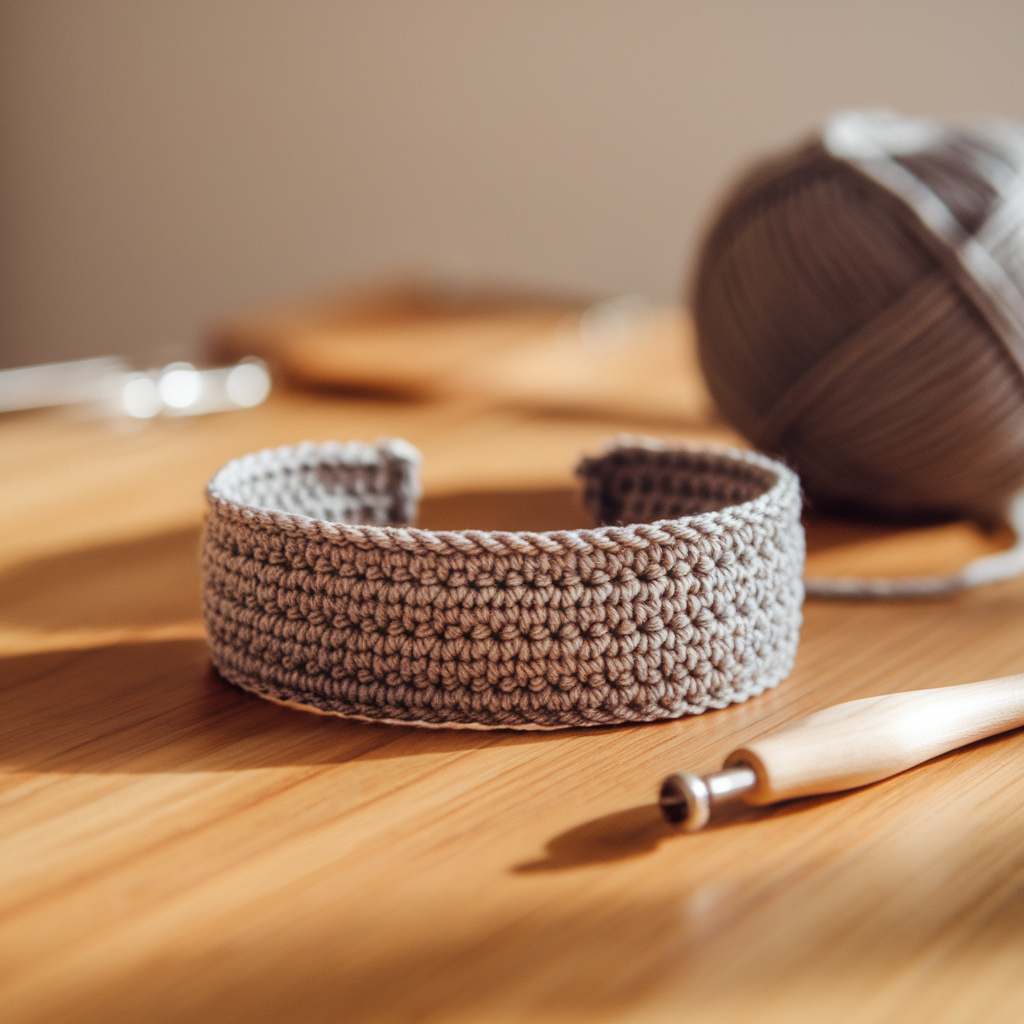 - Edge tidy (optional): Work an even round of sc around the entire rectangle, placing 3 sc in each corner if you make wide cuffs — for bracelets, just sc along short ends to tidy.