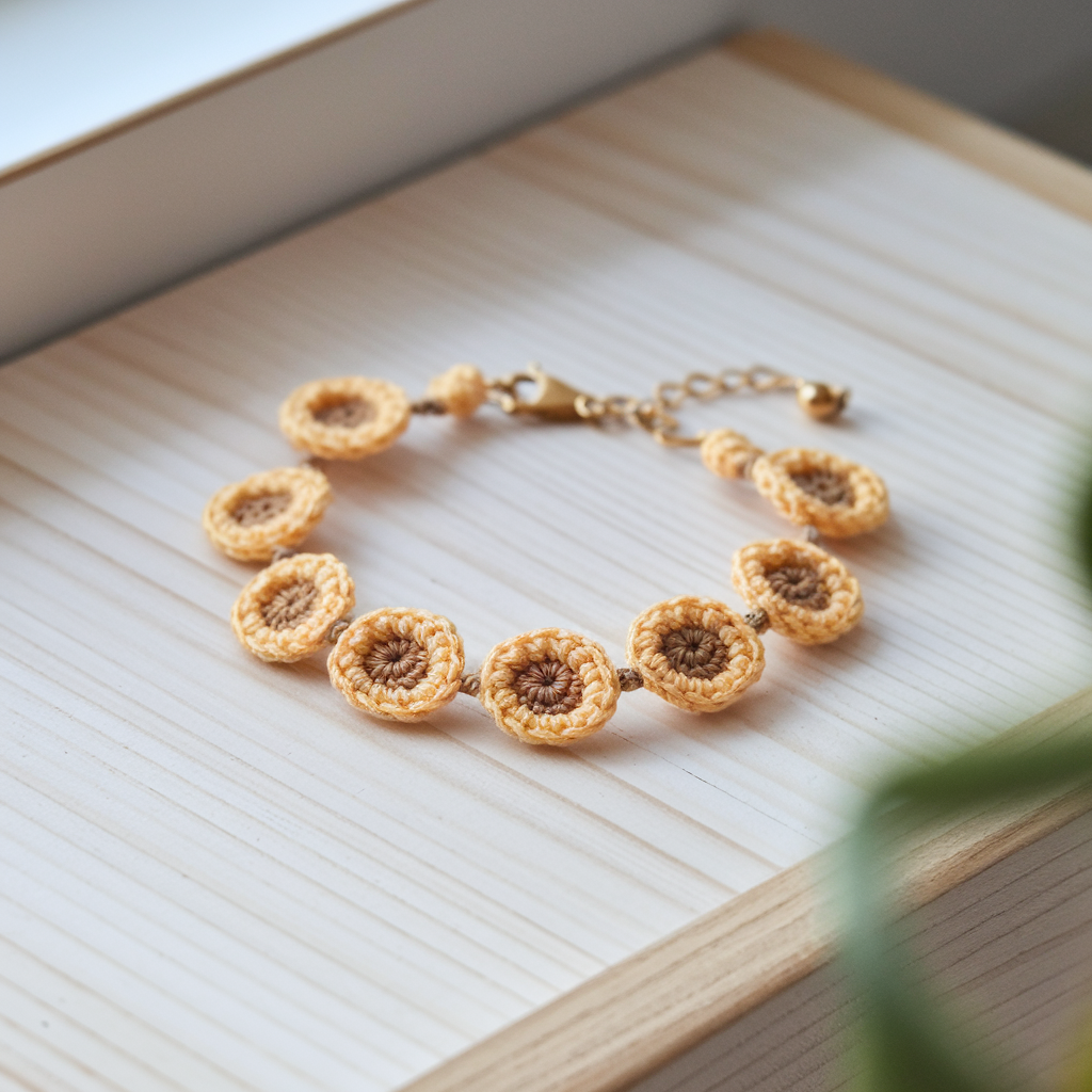 Each of these five bracelet styles offers a different aesthetic and production rhythm — from the sculptural Dalia petals and slanted puff texture to the minimalist Suzette band, sunny Summer Flower chains, and delicate Lace Cuffs. Small projects like bracelets are ideal for experimenting with yarns, colorways, and finishes with low material cost and quick turnaround.
