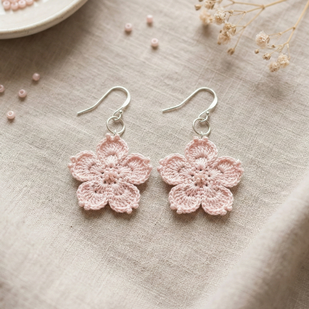 3. Crochet Sakura Earrings Pattern