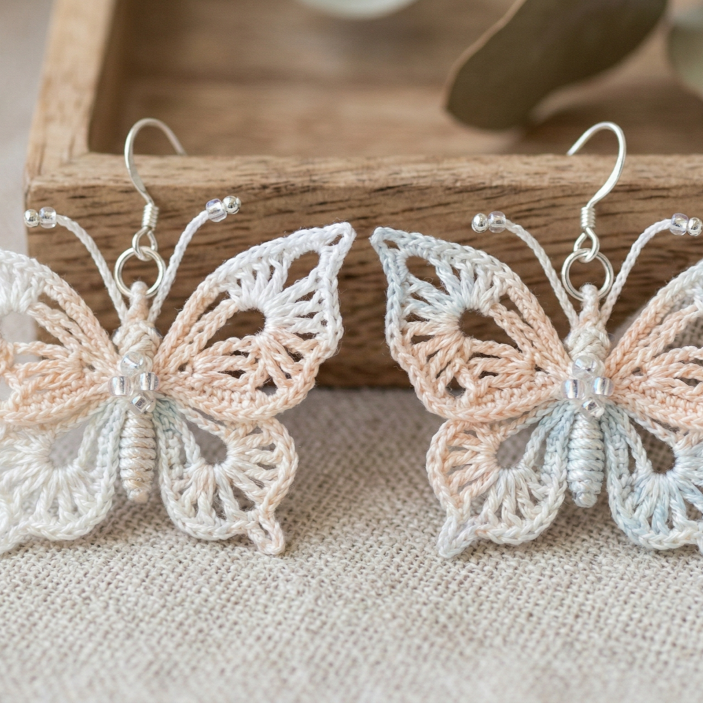 Handmade crochet earrings are tiny statements — light, fast to make, and endlessly customizable. Below you’ll find a friendly introduction (materials, hardware, sizing, gauge math, safety), followed by five fully detailed earring patterns: Micro Butterfly, Wings, Sakura, Mini Mandala, and French Mini Peacock Feather. Each pattern includes skill level, materials, exact step-by-step instructions, finishing/assembly, styling tips, variations, and care. I wrote them to be easy to follow and to adapt to different yarns and hook sizes.