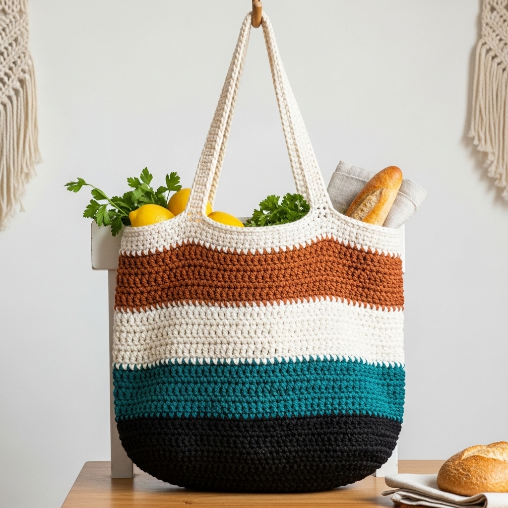 - Yarn & durability: Market totes should be sturdy — use cotton or cotton-blend worsted (weight 4) or t-shirt/tube yarn for structure. For lightweight, foldable bags use DK/cotton yarn. For extra strength, carry a second strand at the base or add a fabric lining.