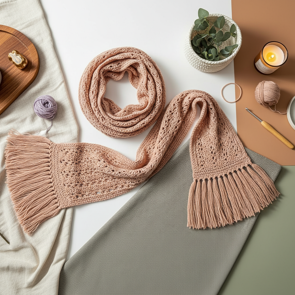 - Yarn choice matters. I’ll recommend yarn weights for each scarf. For drape you’ll often want softer fibers (merino, alpaca, cotton blends); for structure use plied wool or cotton.