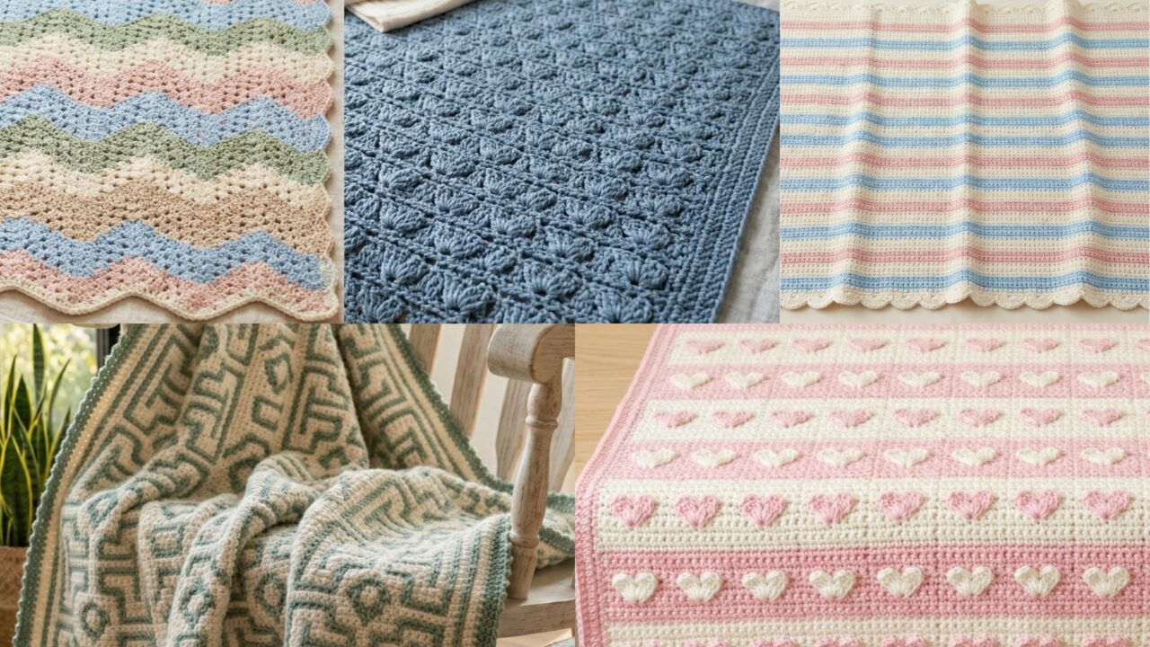 What makes crochet baby blankets especially enjoyable is the variety you can create with just a few basic stitches. A ripple blanket can feel classic and soothing. A cluster V stitch blanket brings lovely texture and drape. Heart motifs make a blanket feel sweet and sentimental. Scalloped lines create a soft decorative finish. A mosaic knit-inspired blanket adds modern style while staying cozy and baby-friendly. Each design has its own personality, but all of them are perfect for making something soft, beautiful, and lasting.