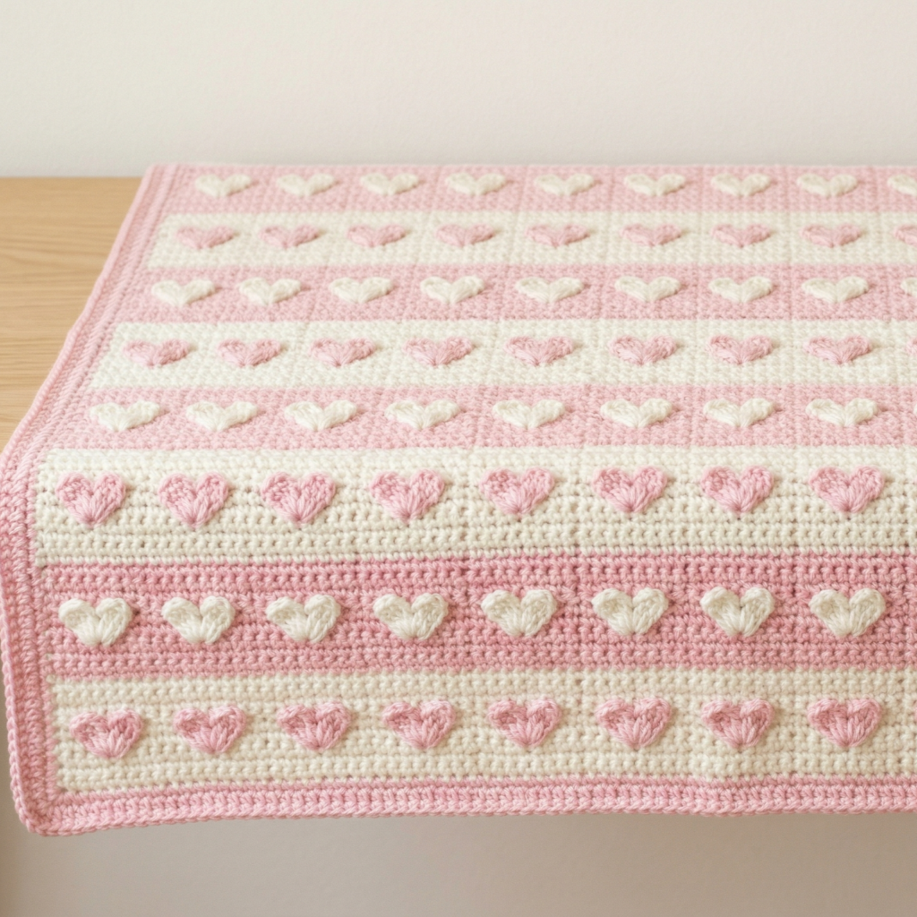 A hearts-a-plenty baby blanket is sweet, sentimental, and perfect for a keepsake gift. The heart motifs give the blanket a loving, tender feel that makes it especially meaningful for babies and families. This design is ideal if you want a blanket that feels charming and heartfelt from the very first stitch.
