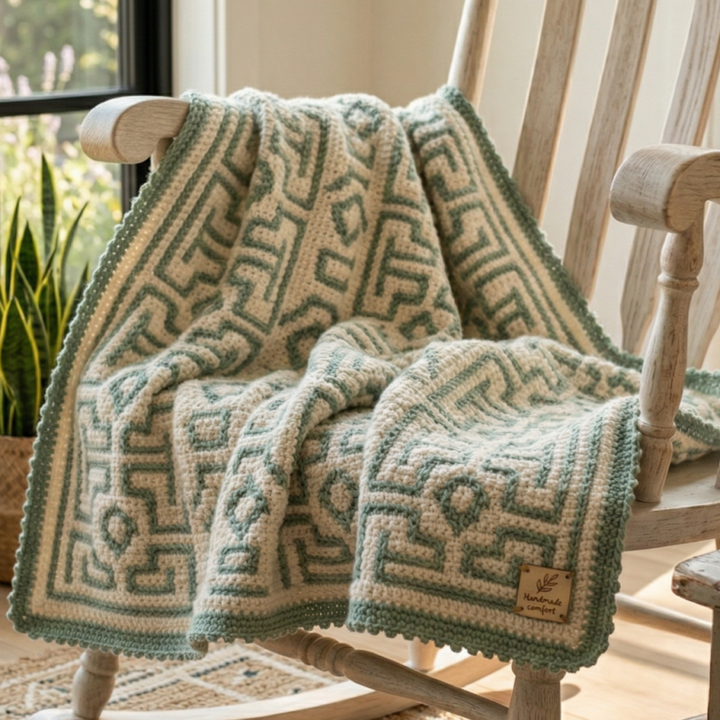This blanket looks beautiful in soft modern color palettes such as cream and sage, dusty blue and white, or taupe and blush. If you want the pattern to feel more contemporary, choose two muted shades with clear contrast. The mosaic look is perfect for a keepsake blanket that feels stylish and memorable.