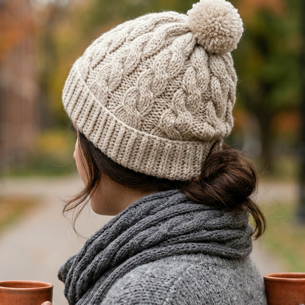 A cable beanie is a beautiful way to bring texture and elegance into a winter accessory. It has that classic handmade look that feels a little more refined than a plain hat, while still being cozy and practical. Cable stitches create raised braided lines that make the beanie feel rich and detailed.