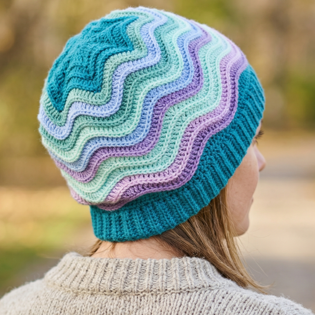 Wavy beanies are beautiful in color combinations that shift naturally, like blue and teal, cream and tan, or pastel rainbow tones. This is a great style for people who love accessories that feel fun and artistic but still practical.