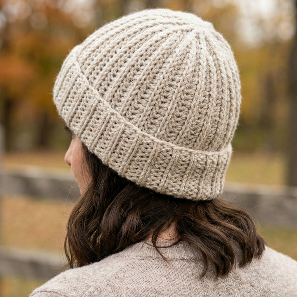 A country rib beanie is cozy, relaxed, and timeless. It has that classic handmade feel that never goes out of style. The ribbing adds stretch and texture, making it one of the most comfortable and wearable beanie patterns you can make.