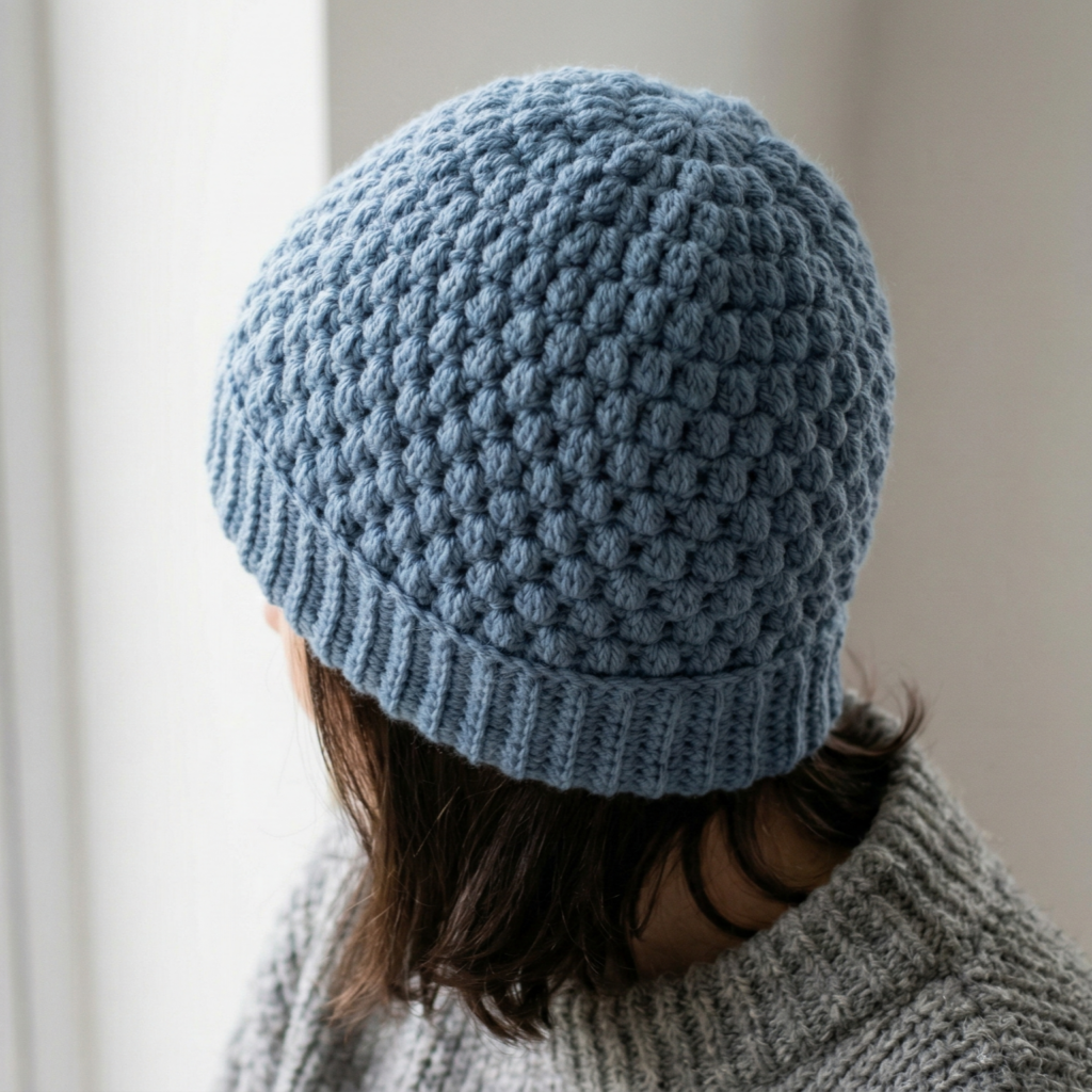 This style works very well in solid colors because the texture becomes the star. A muted tone like sage, mocha, or dusty blue can make the mini bean stitch look even more elegant. This is a great everyday beanie if you want something subtle but not plain.