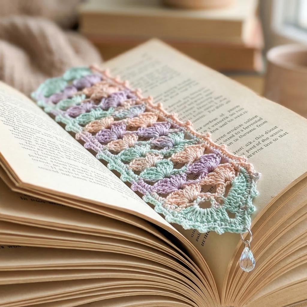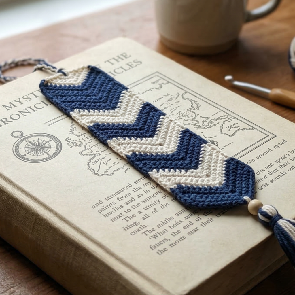 These five bookmark patterns give you a range of styles — from crisp scallops and bold stripes to floral tassels, chevron geometry, and heirloom lace shells. They’re perfect for using up small yarn scraps, exploring new stitch textures, and creating sweet little gifts for booklovers.