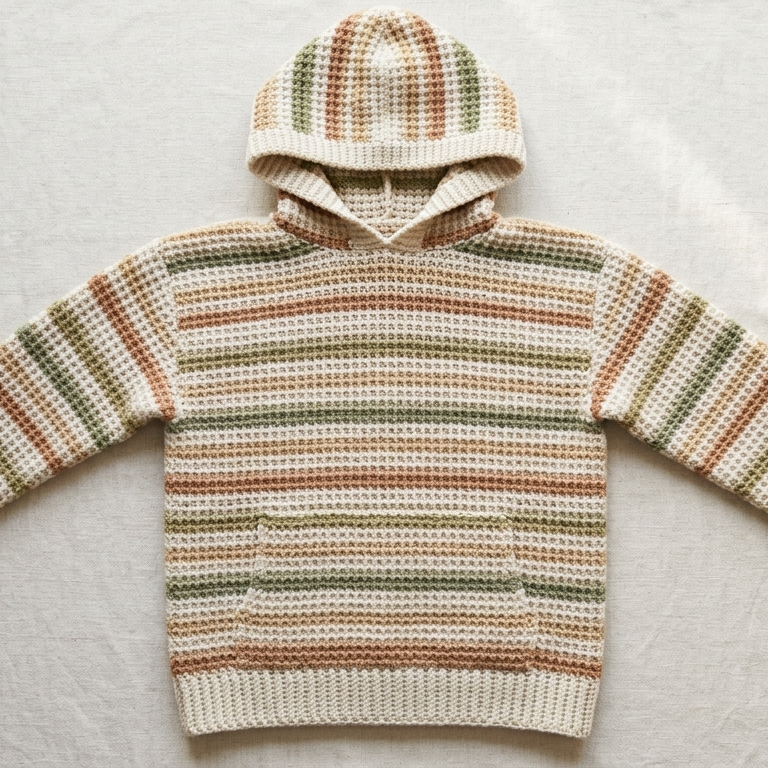 Pick a stitch that gives the hoodie some visual interest without making it too bulky. Half double crochet, moss stitch, or a gentle textured repeat can all work nicely. The texture should feel natural and understated, like the softness of a sweater you will want to reach for often.