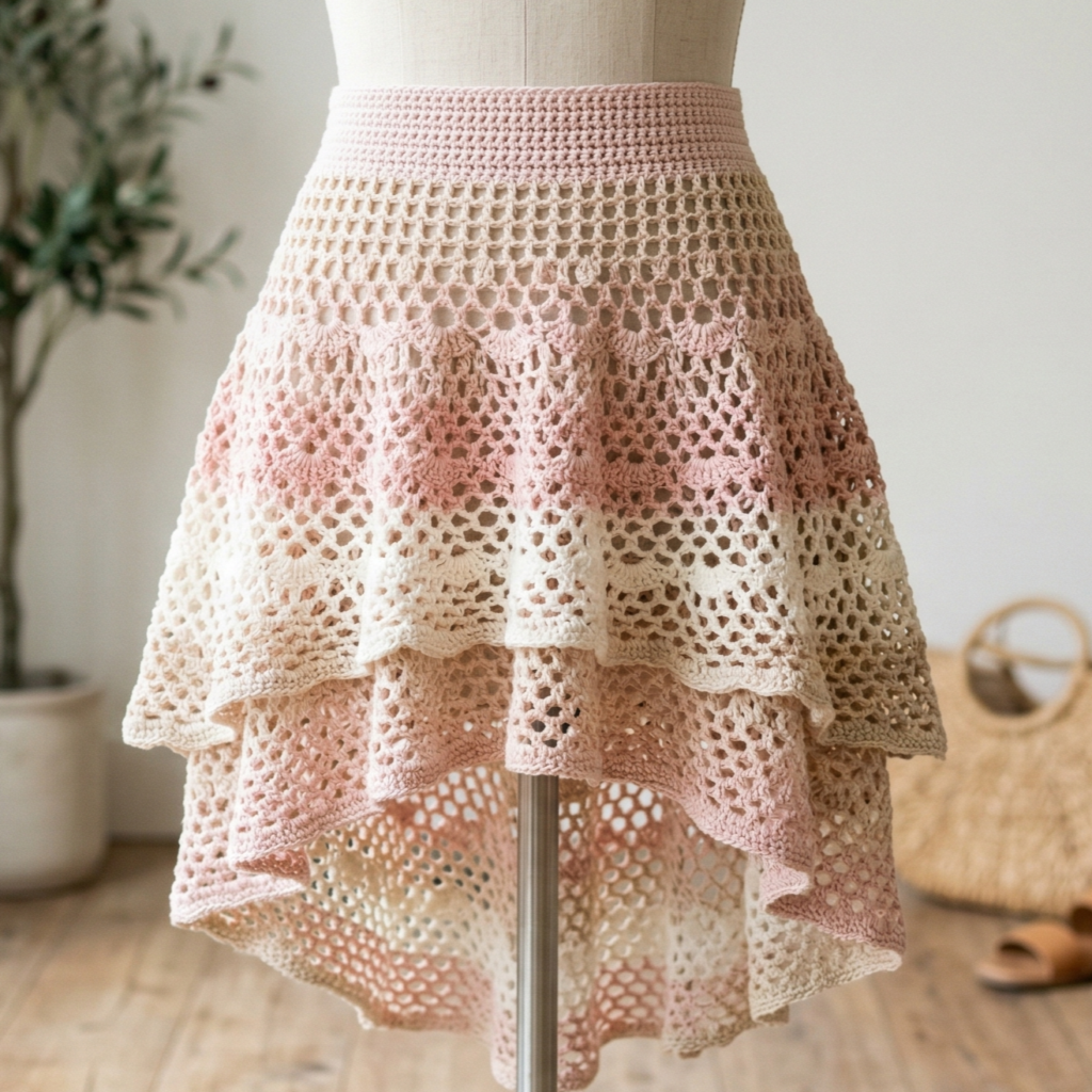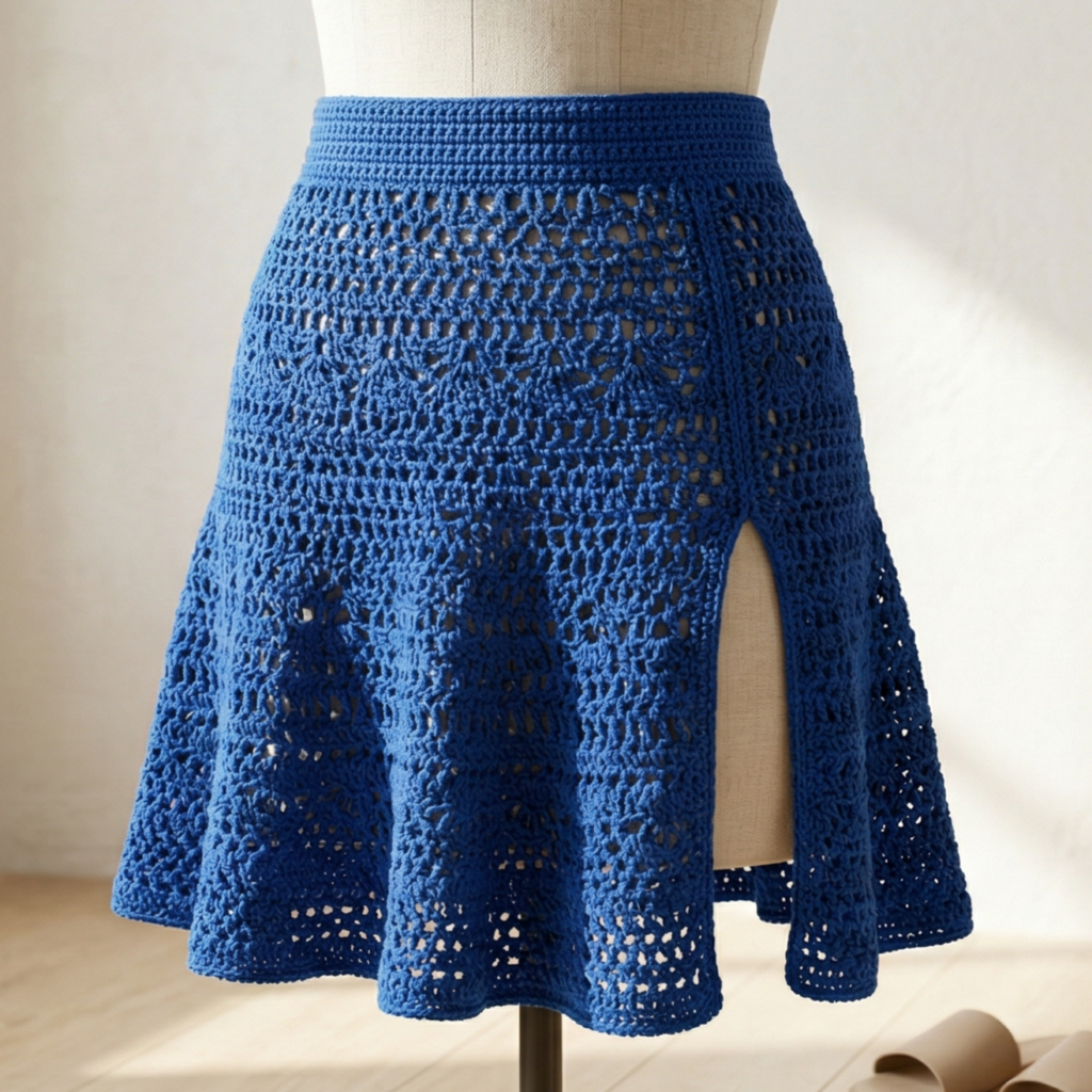 The hem can be simple or decorative. A shell edge, picot edging, or neat single crochet border can give the skirt a polished finish. If you want a very trendy look, a slightly wavy hem works beautifully with the airy mesh design.