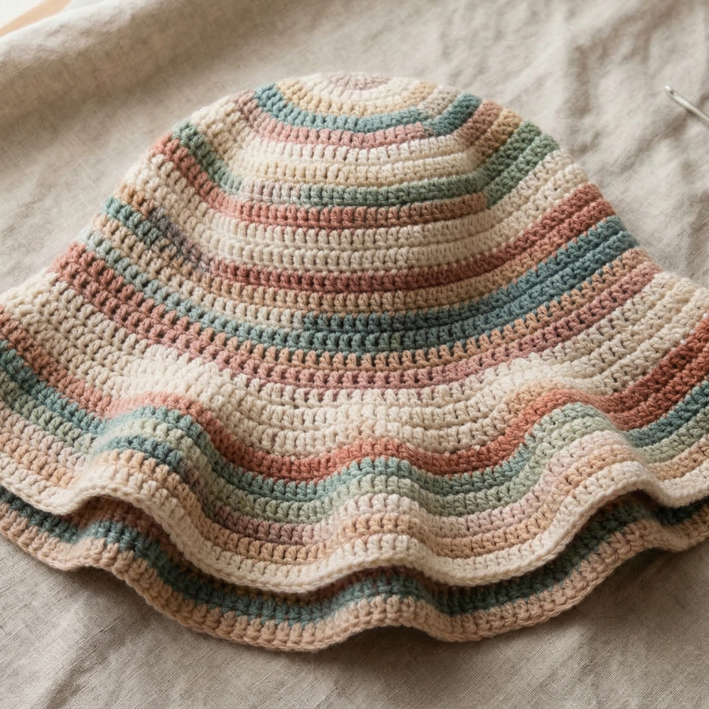 A simple crochet hat is a smart scrap yarn project because you can make stripes, blocks of color, or gradient effects. It uses more yarn than the other projects on this list, but it is still very scrap-friendly if you are combining leftover skeins.