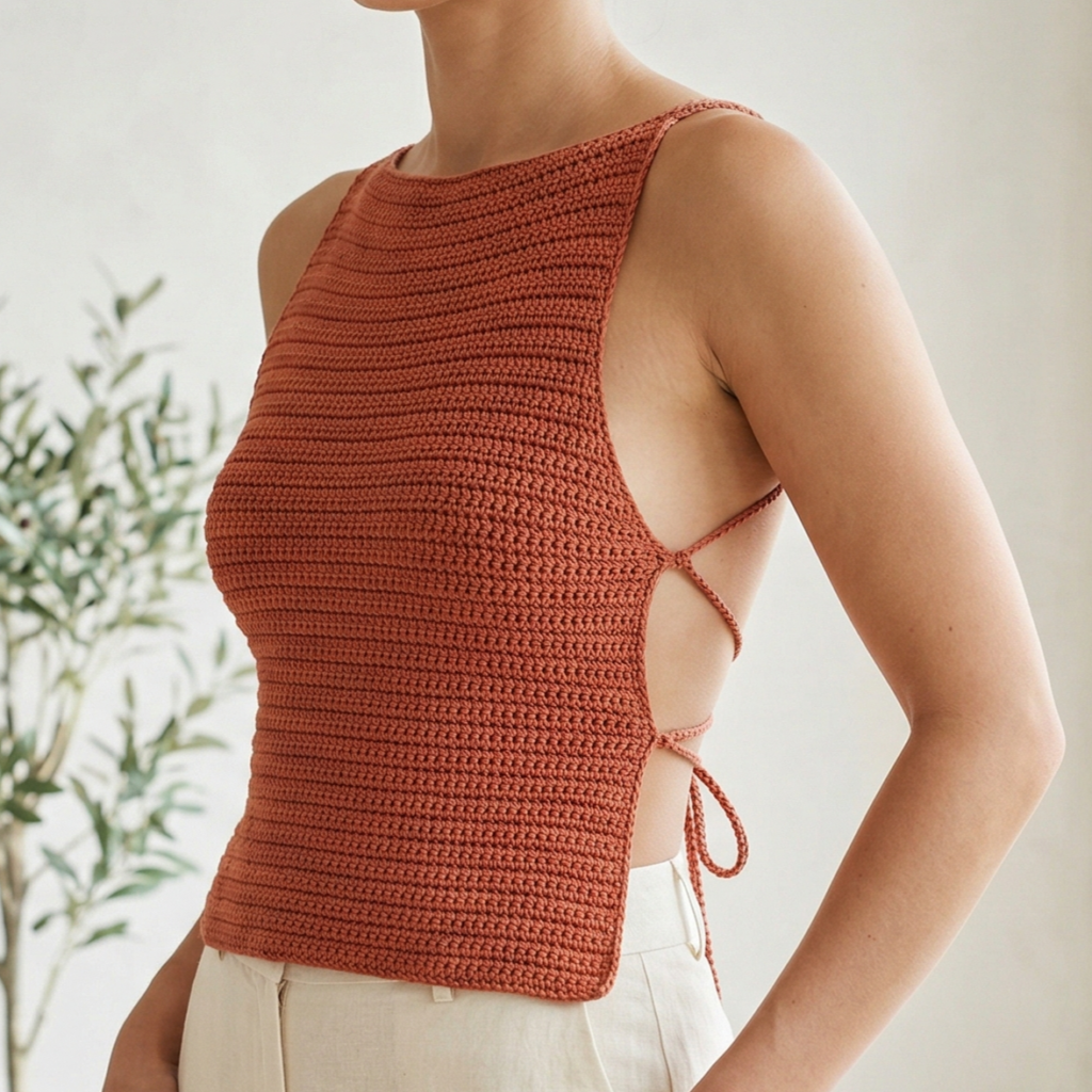 If you want a more flattering fit, add darts, increases, or decreases near the bust and waist. A backless top often looks best when the front is carefully fitted, since the open back naturally makes the design feel more dramatic.