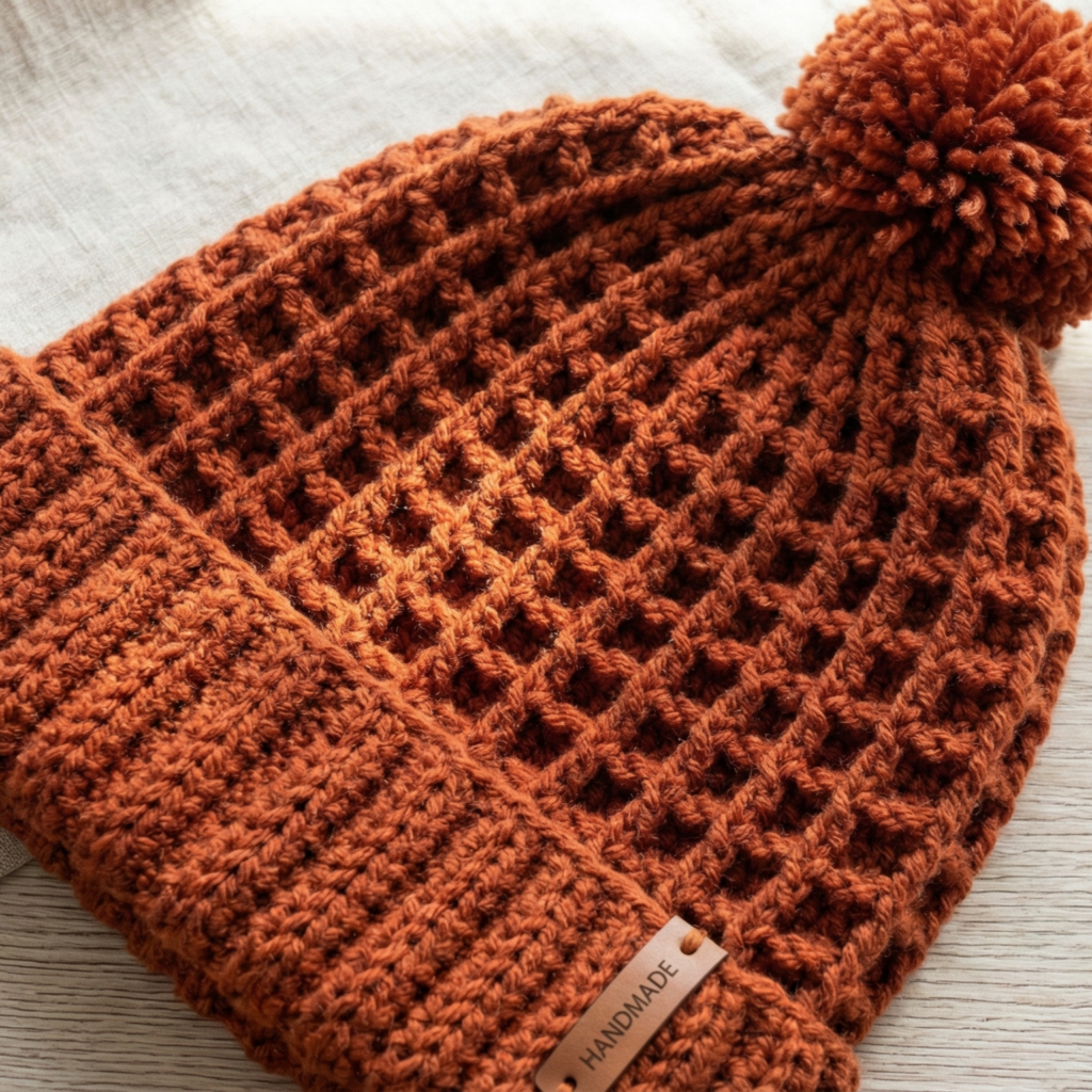 Vibe: deep waffle texture — very warm and cozy; classic winter hat.