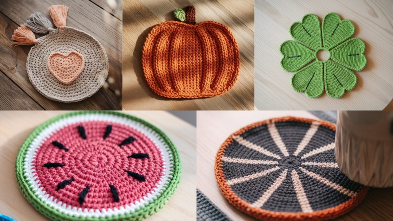 There. Five coaster patterns that actually get used: watermelon (fun and seasonal), boho heart (giftable and cute), wheelie (modern and graphic), fall pumpkin (seasonal bestseller), and clover (charming and simple). Each one is designed to be fast to make, easy to wash, and lovely stacked as a gift set. Make a set of four in coordinating colors, block them flat, tuck them with a ribbon and a small tag, and you’ve got a present people will actually leave on a table — not in a drawer.