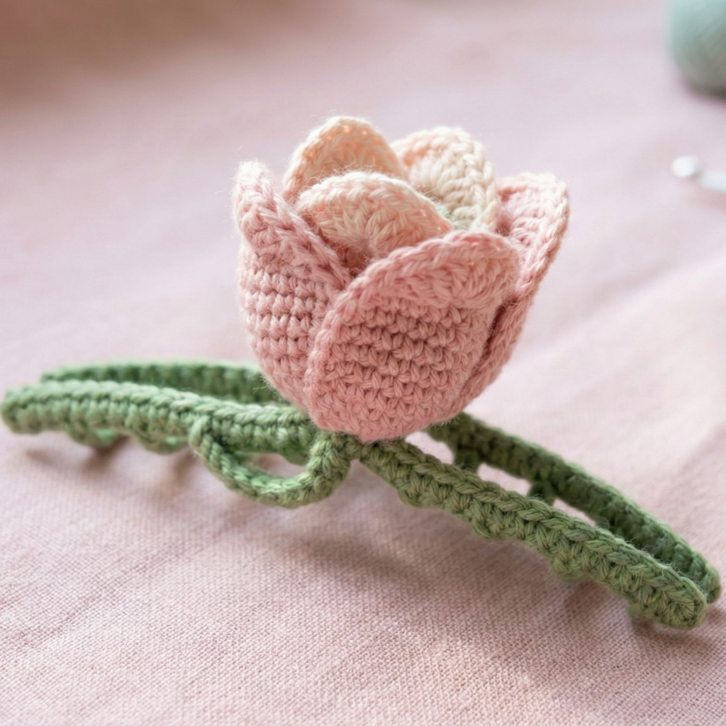 You now have five full crochet hair clip projects that cover whimsical (bunny & mushroom), romantic (lace bow & floral thread), and fresh botanical (tulip claw) styles. Each pattern is fast, uses small amounts of yarn, and includes secure attachment methods so the clips hold up to wear. Pick one to start — snap a photo, make a pair for a friend, or mix motifs across clips for a statement set.