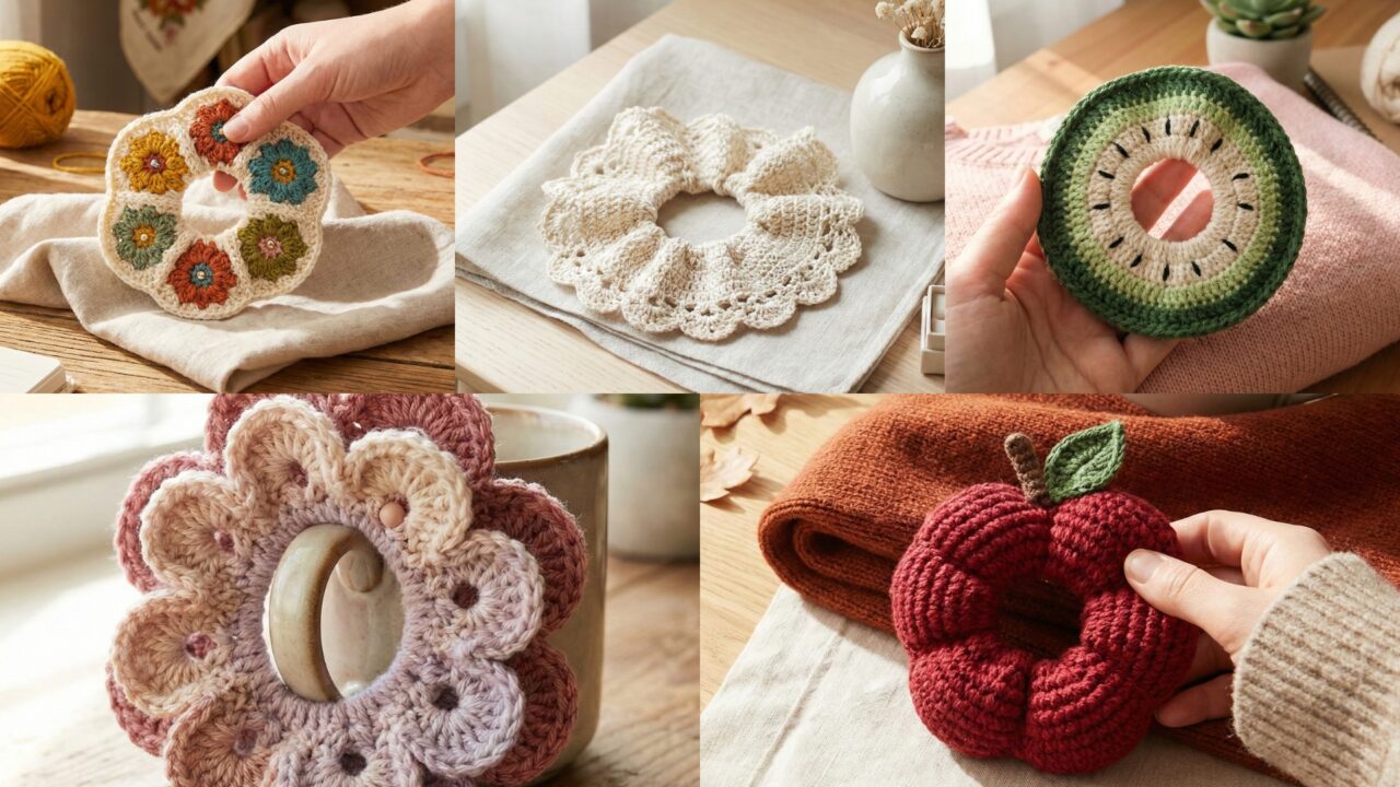 Scrunchies are tiny, fast, delightful projects that make perfect gifts — they’re wearable, washable, and a great way to use pretty yarn. Below you’ll find a warm introduction (materials, measurements, and general assembly tips) and five fully detailed scrunchie patterns with clear step-by-step instructions, variations, and finishing tips: Giant Flower, Apple Inspired, Retro Colorful Floral, Kiwi Inspired, and Elegant Lacy Border. Each pattern is written so you can follow it start-to-finish and customize sizes, colors, or textures.