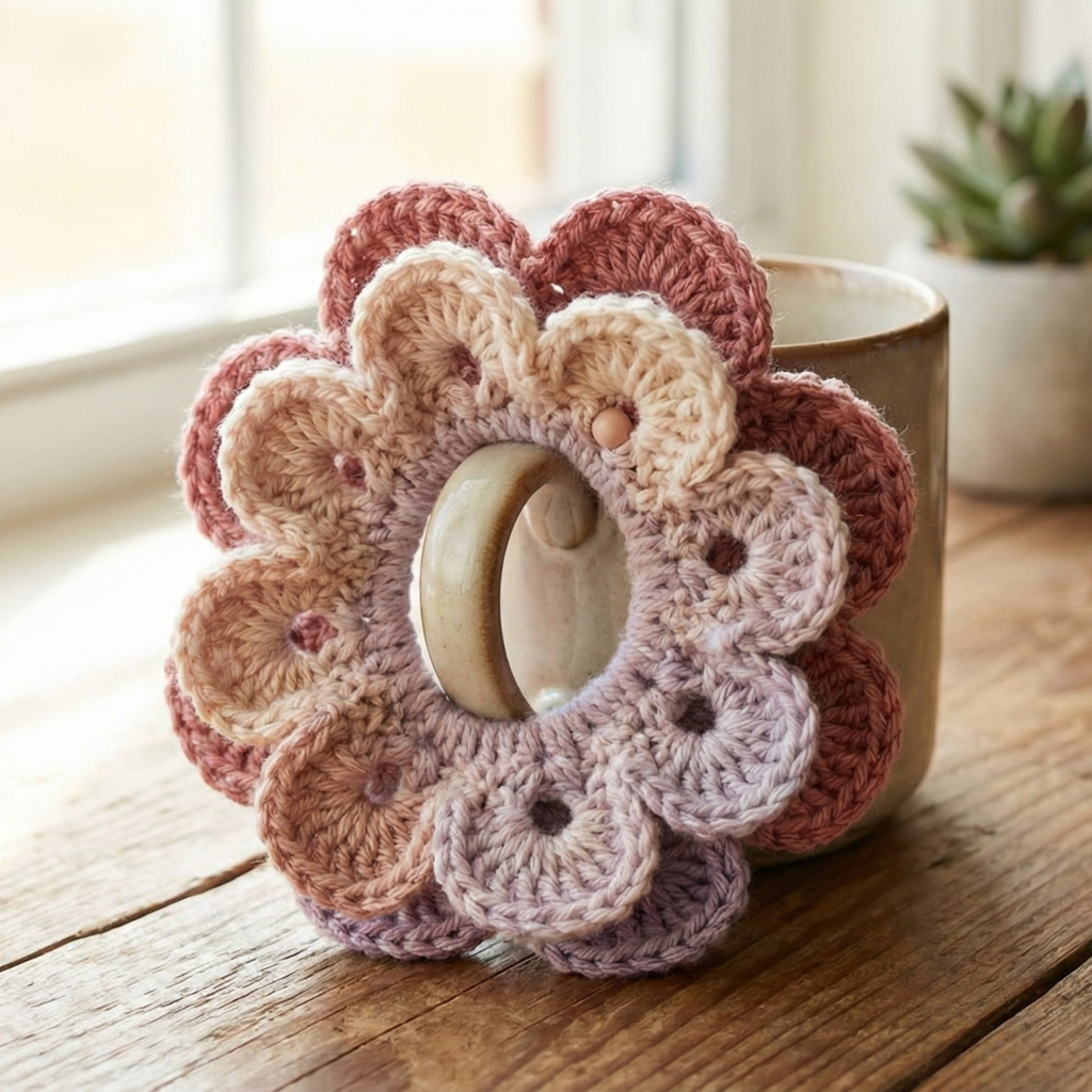 - Add a small bead or button at the flower center for polish (sew tightly). Weave in ends.