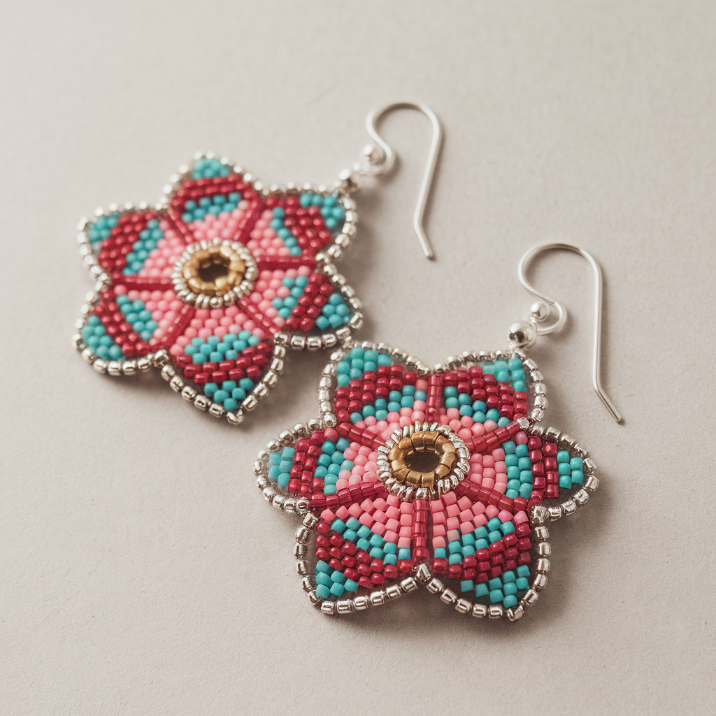 Beaded earrings are the most efficient way to turn a handful of tiny beads into a striking piece of jewelry. They’re compact, travel-friendly, and you can make one in an evening. The techniques below use standard seed beads (Miyuki Delica 11/0 or Toho 11/0) and classic stitches (peyote, brick stitch, right-angle weave, raw, and off-loom pixel work). If you’ve never beaded before, start with the Brick Stitch Flower — it’s forgiving. If you’re comfortable with bead tension and working with fireline or Nymo, try the Celtic Knot or Van Gogh panels for eye-catching statement pieces.