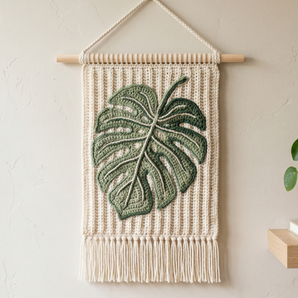 5. Crochet Ribbed Leaf Tapestry Wall Hanging Pattern