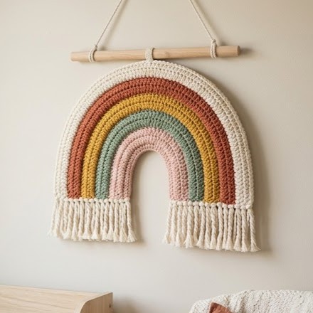 A small boho rainbow works beautifully in nurseries or cozy home nooks because it adds a soft cheerful touch without taking over the wall. Muted rainbow shades usually look more refined and modern than very bright tones, but either style can be lovely depending on the room.
