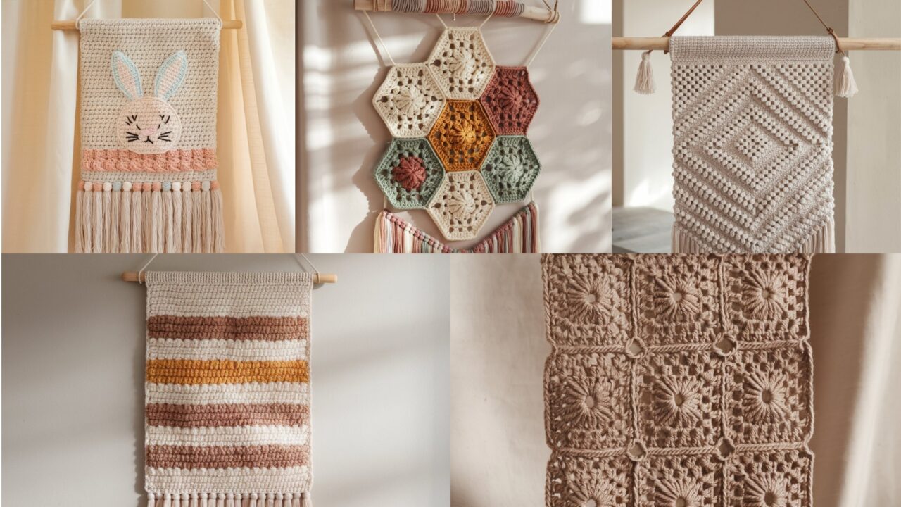 Want to add instant handmade warmth and texture to your walls? Crochet wall hangings are one of the most satisfying home-decor projects: they’re tactile, customizable, and great for using up yarn stash. Whether you prefer modern geometric lines, soft boho fringes, or playful shapes (hello, rabbit!), this post gives you five complete wall-hanging projects with step-by-step instructions, materials, finishing and hanging methods, styling tips, troubleshooting, and variations so you can make pieces that look like they belong in a boutique store.
