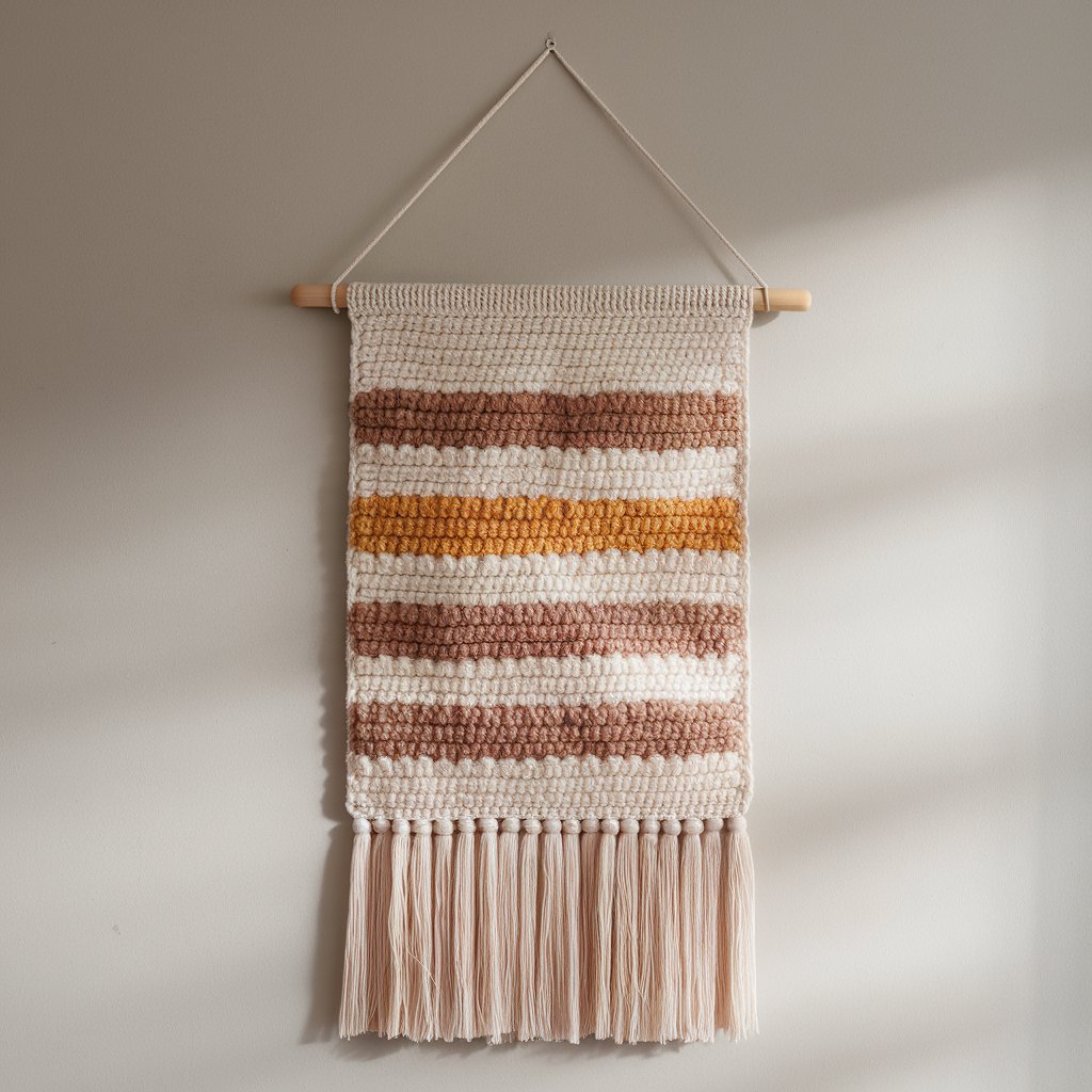 - For wall hangings, yarn choice controls drape and structure: cotton or cotton blends give cleaner stitch definition and lighter weight; acrylic/wool blends give more warmth and loft; t-shirt yarn or bulky cotton cord gives structure for sculptural hangings.