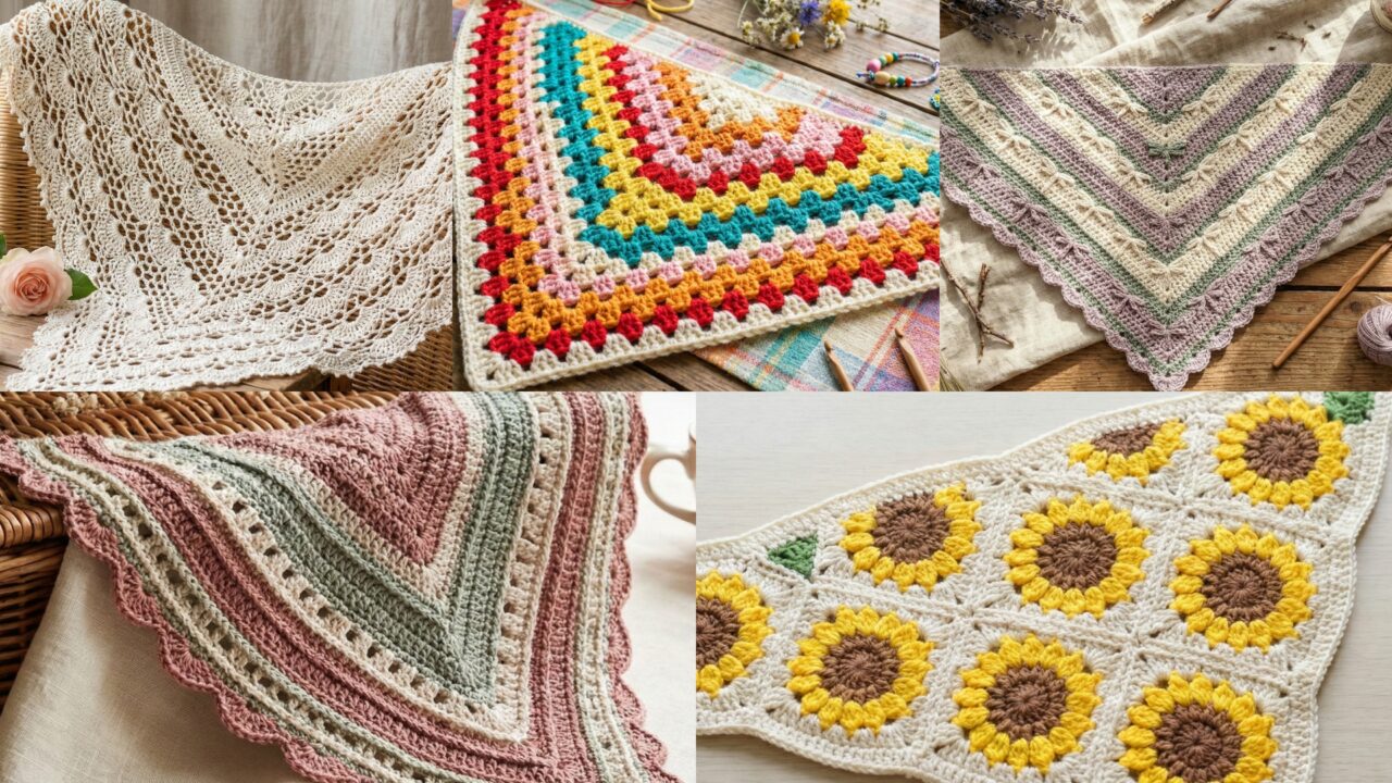 Bandanas are delightfully fast projects that add instant personality to an outfit. They sit nicely on the head, around the neck, or tied to a bag — and they’re a perfect way to show off decorative stitches, granny motifs, and small appliqués. Below you’ll find a friendly, thorough introduction (yarn, hooks, measuring, closures, and care), then five full bandana patterns with materials, stitch notes, clear step-by-step instructions, fit tips, and finish/variation ideas: Cottagecore, Mini Dragonfly Stitches, Lacy, Colorful Granny, and Sunflower Granny Squares.